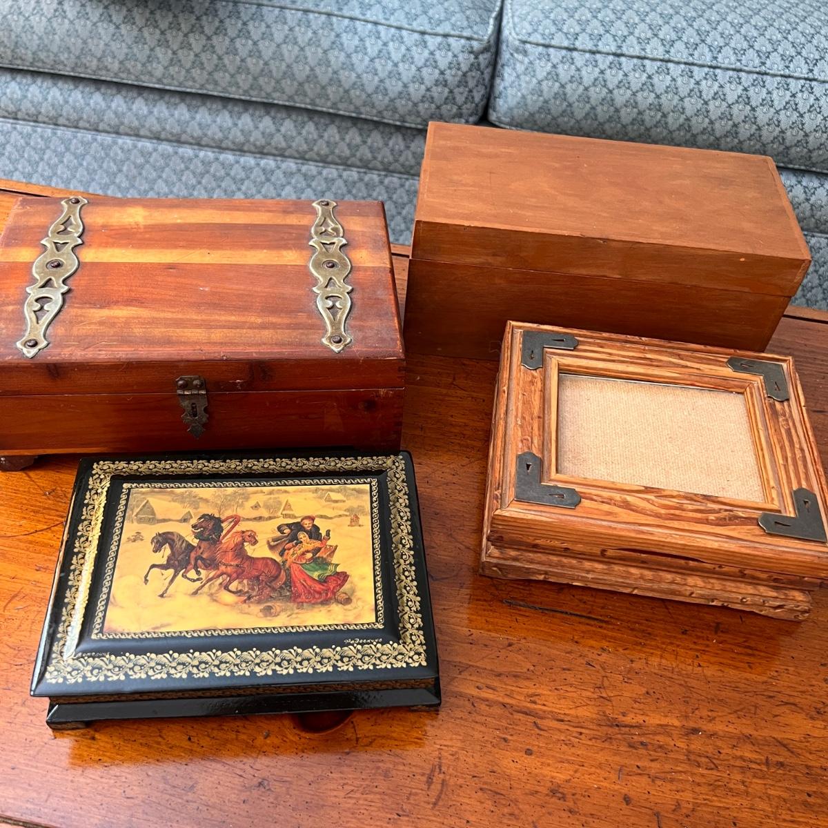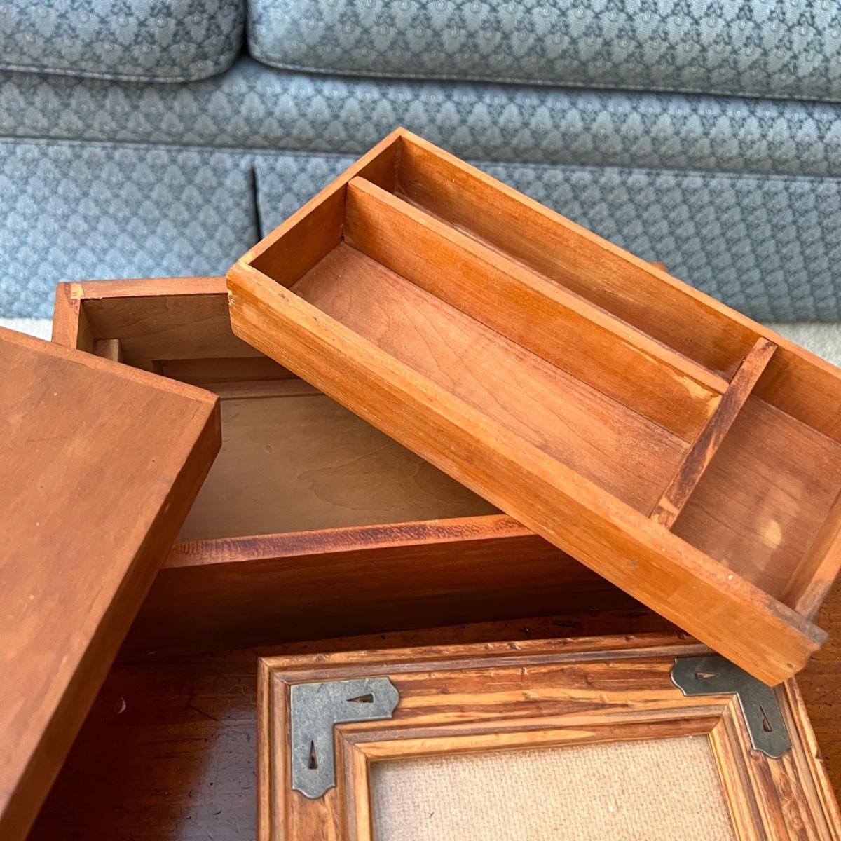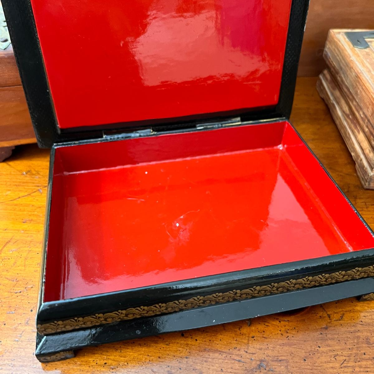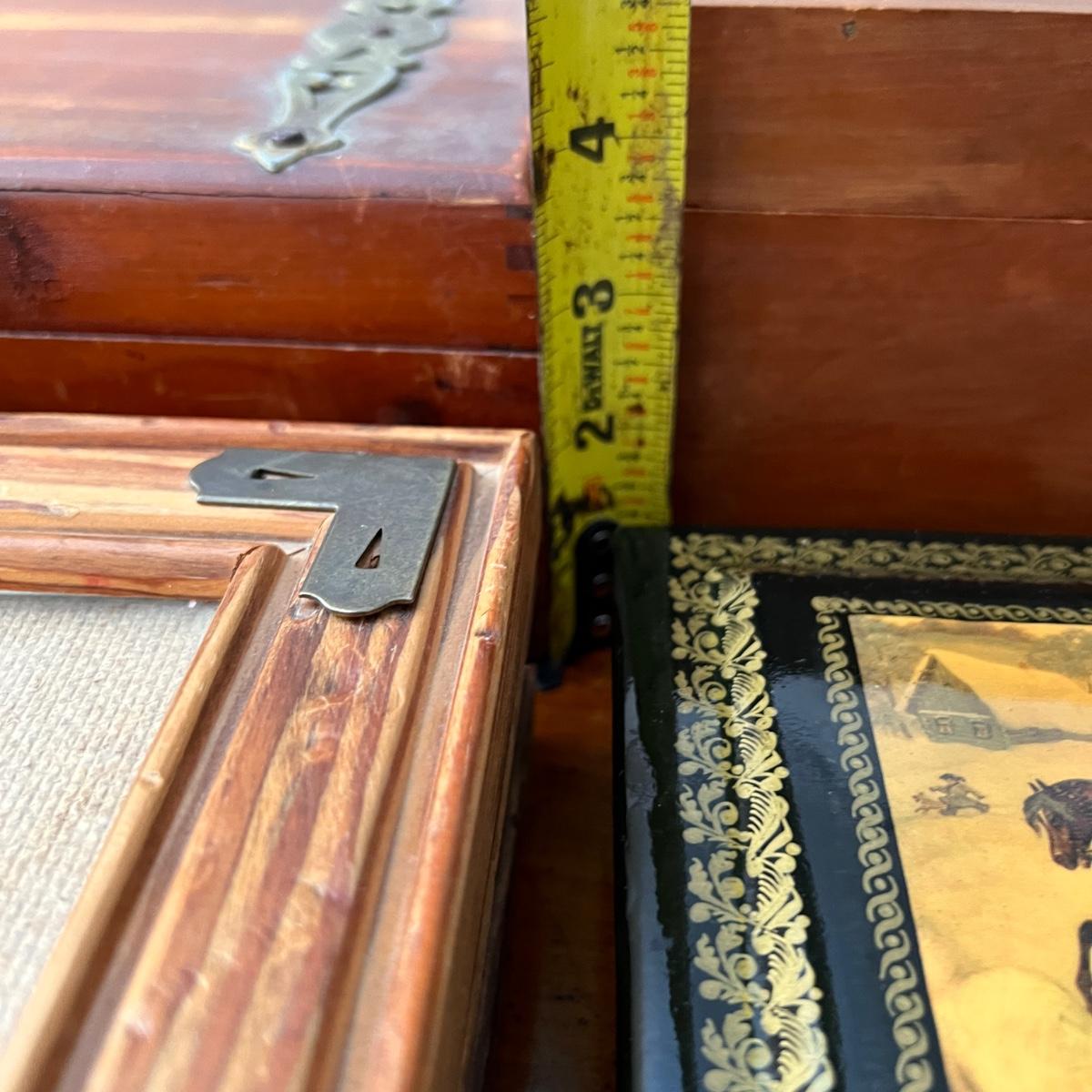 Russian Troika lacquer wooden box, picture window wooden box, Cedarwood box with metal hardware, box with lift out tray.