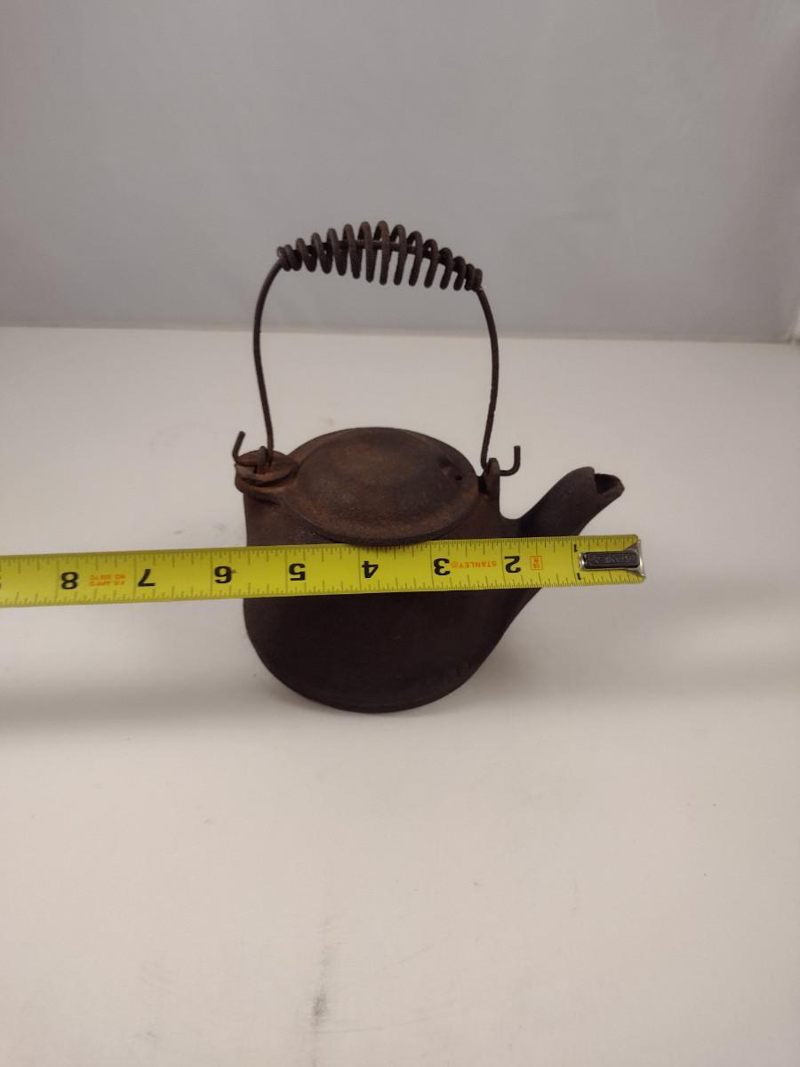 Antique Wagner Ware Miniature Cast Iron Tea/Humidifier Pot. Measures approx 5 1/2" wide. 4 1/2" tall.