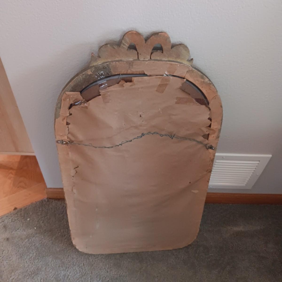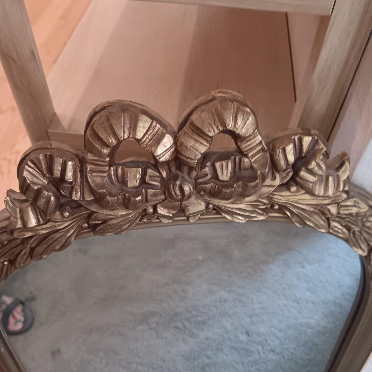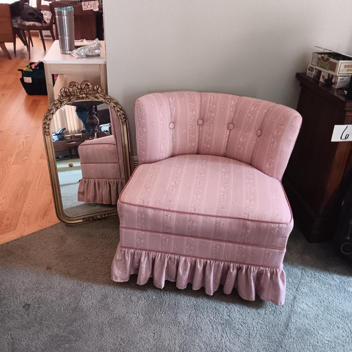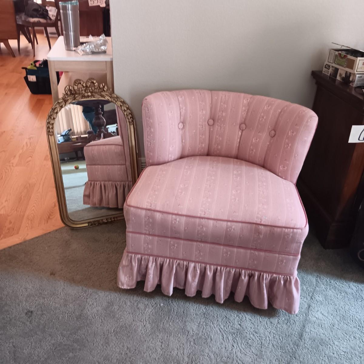 ANTIQUE WALL MIRROR AND AN UPHOLSTERED SWIVEL CHAIR