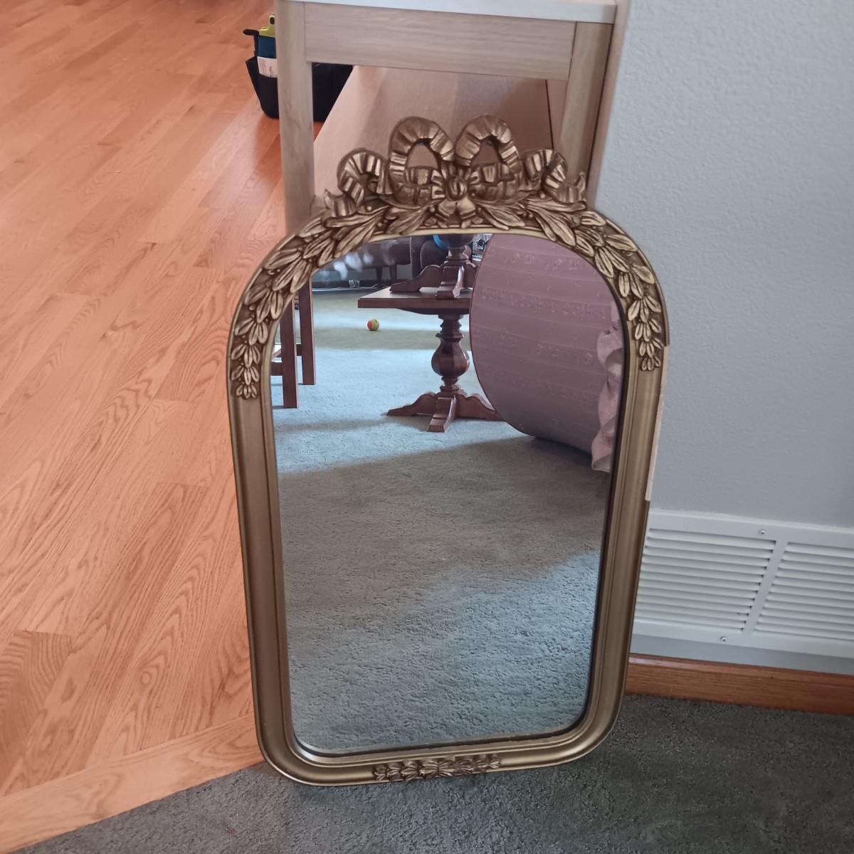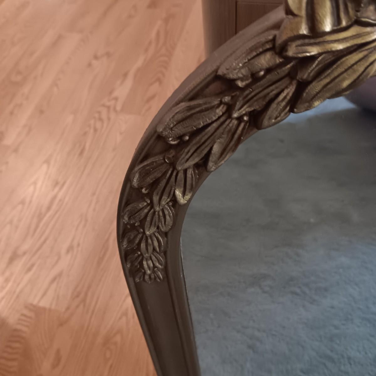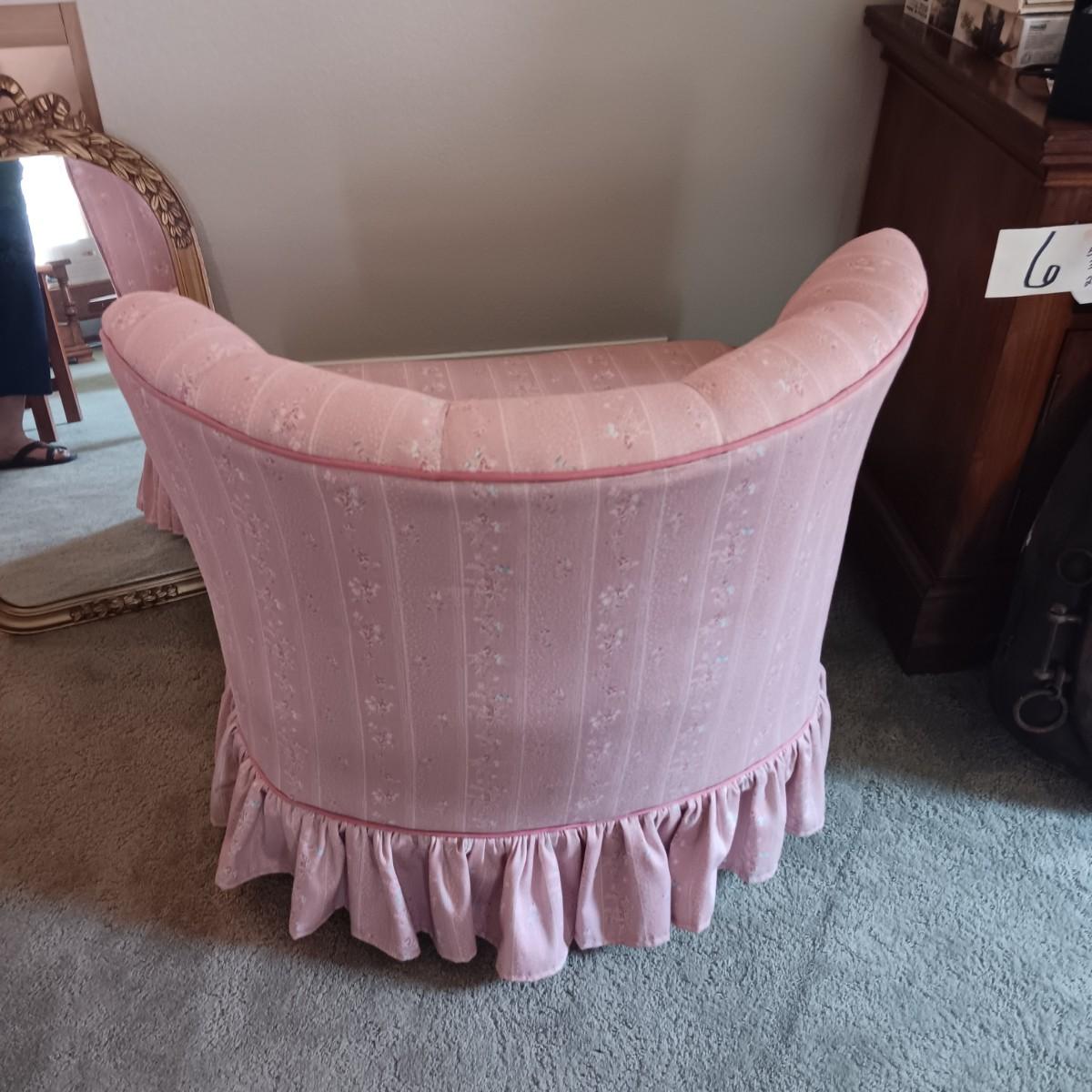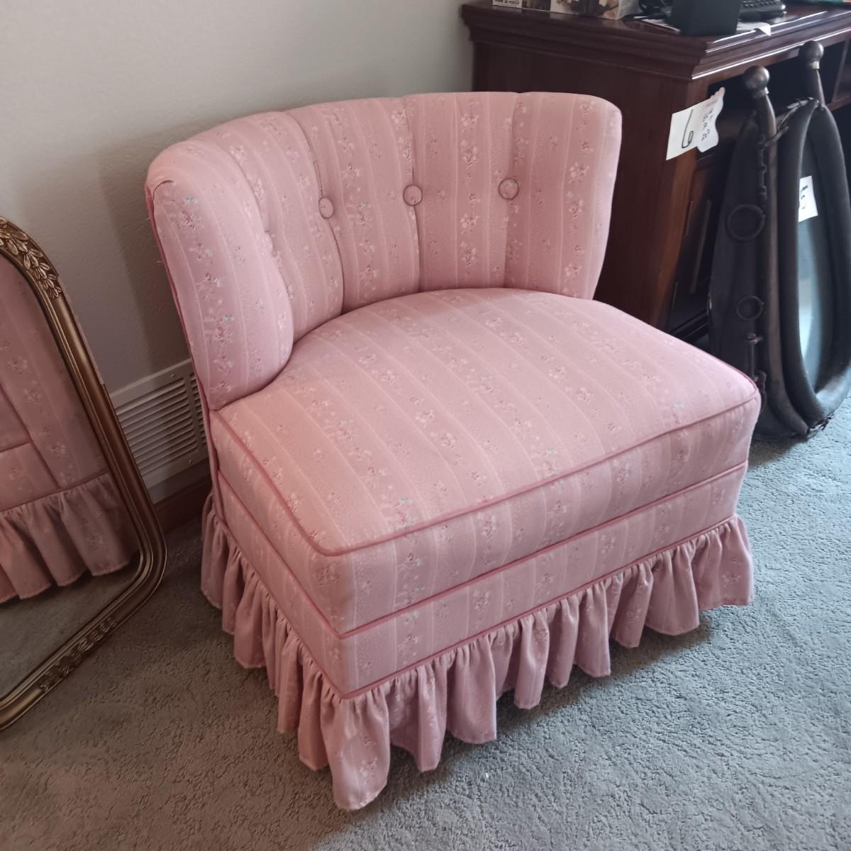 ANTIQUE WALL MIRROR AND AN UPHOLSTERED SWIVEL CHAIR