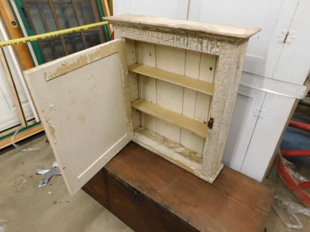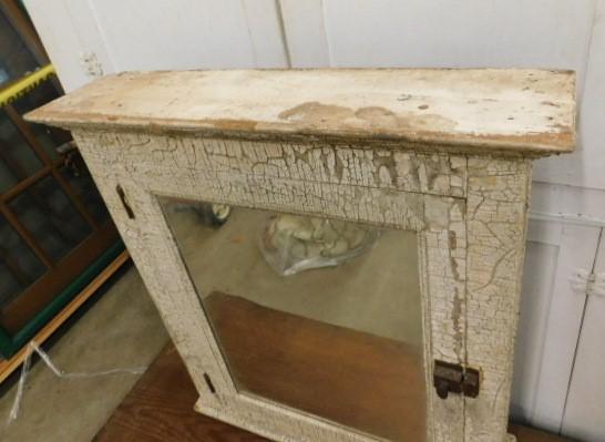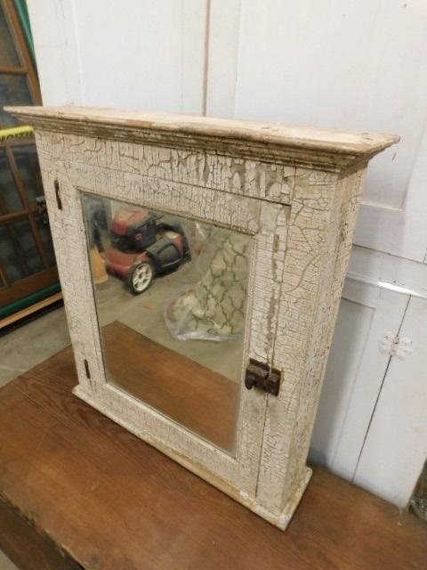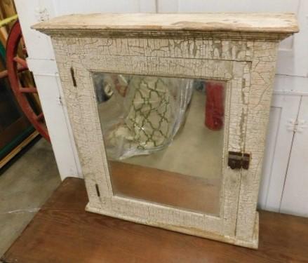 Antique Wall Mount Medicine Cabinet Solid Wood with Mirrored Door 27"x7"x28" nice item! Large Size over two foot square. Has one corner minor damage as shown