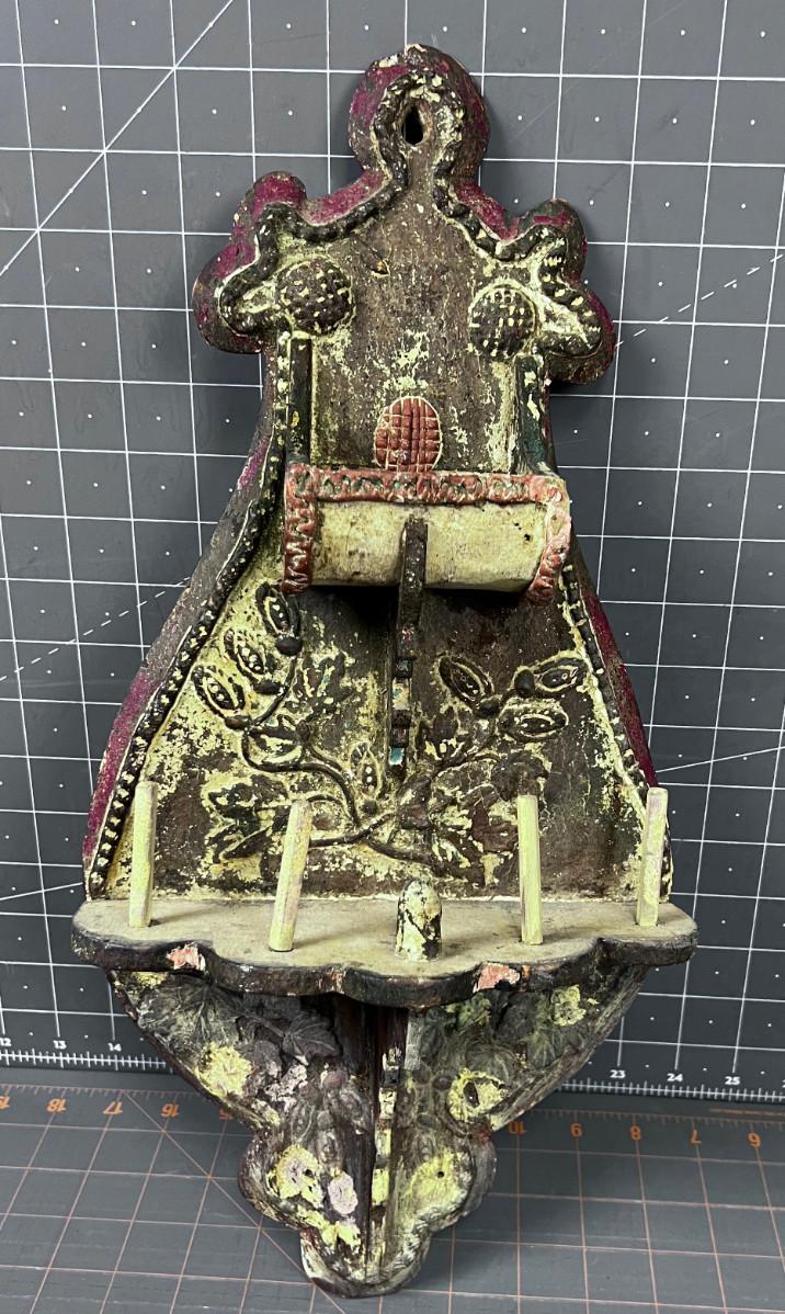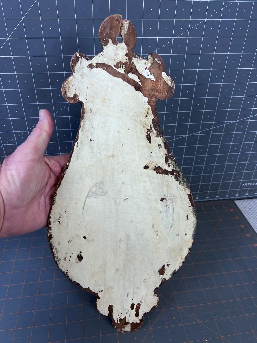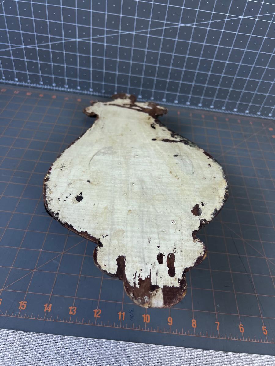 18" long, appears to be wood and composite appliques, rustic chippy paint
