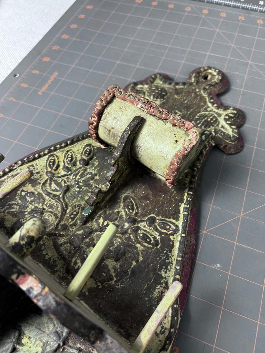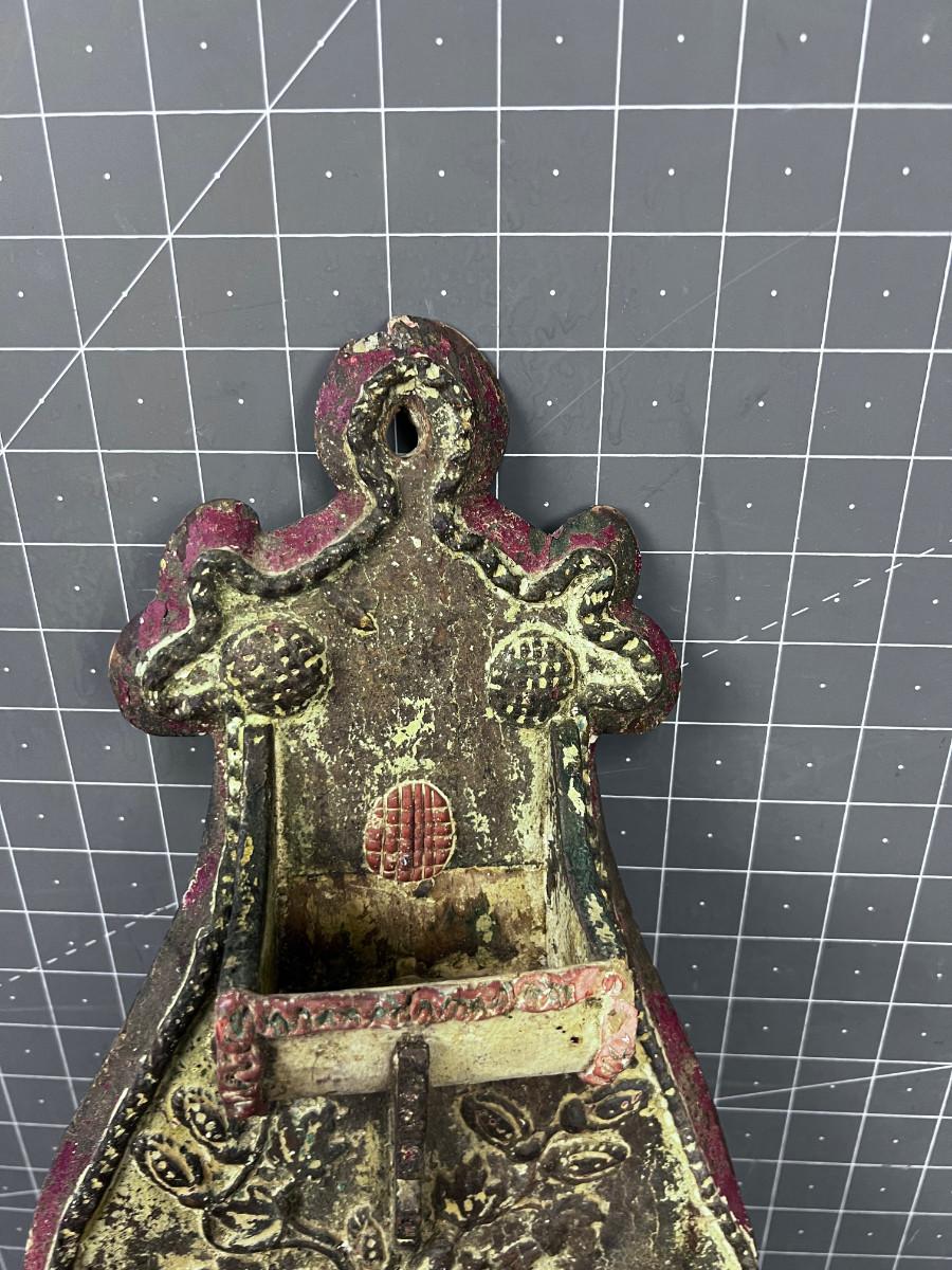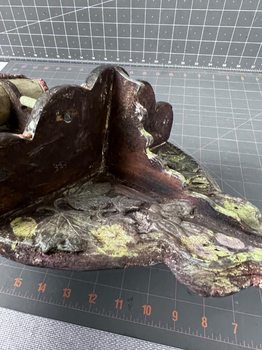 18" long, appears to be wood and composite appliques, rustic chippy paint