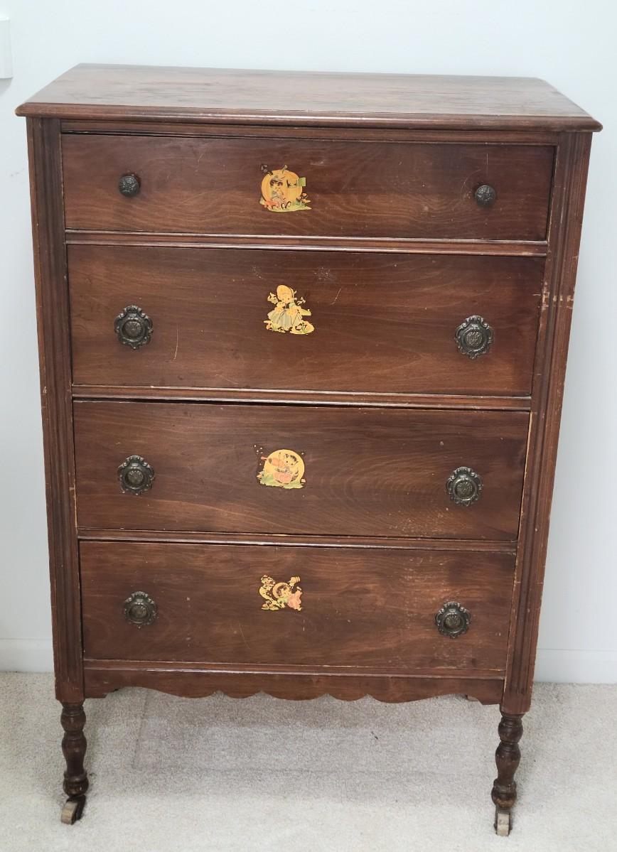 Antique Walnut 4 Drawer Chest