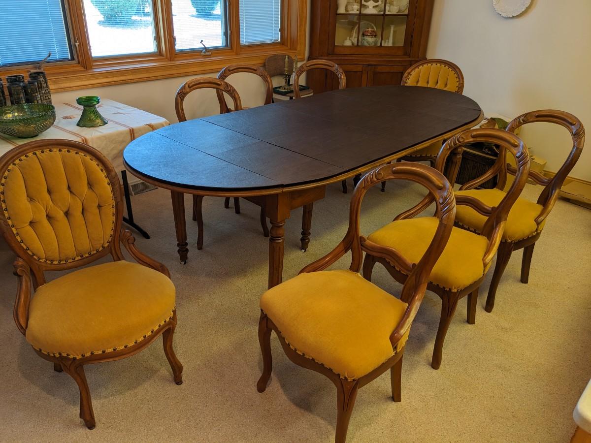 Antique Walnut Dining Table and 8 Chairs