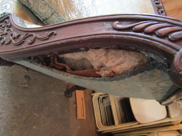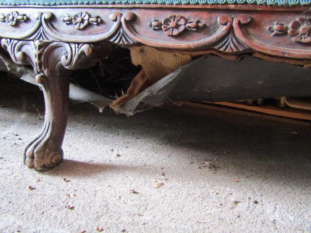 Antique Walnut Frame Empire Design Couch frame appears sound but will need new upholstery.