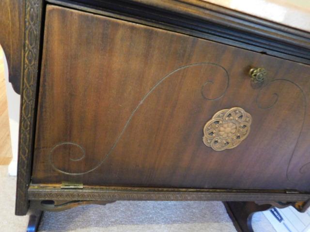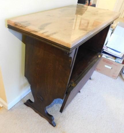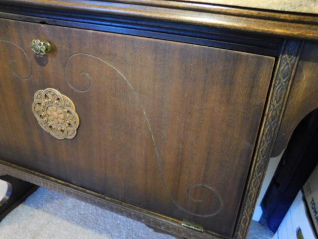 Antique Walnut Bar w/ Marble Top and Scroll and Fret Work 36"x17"x32"
