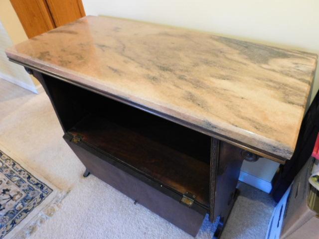 Antique Walnut Liquor Cabinet w/ Marble Top 36"x17"x32"