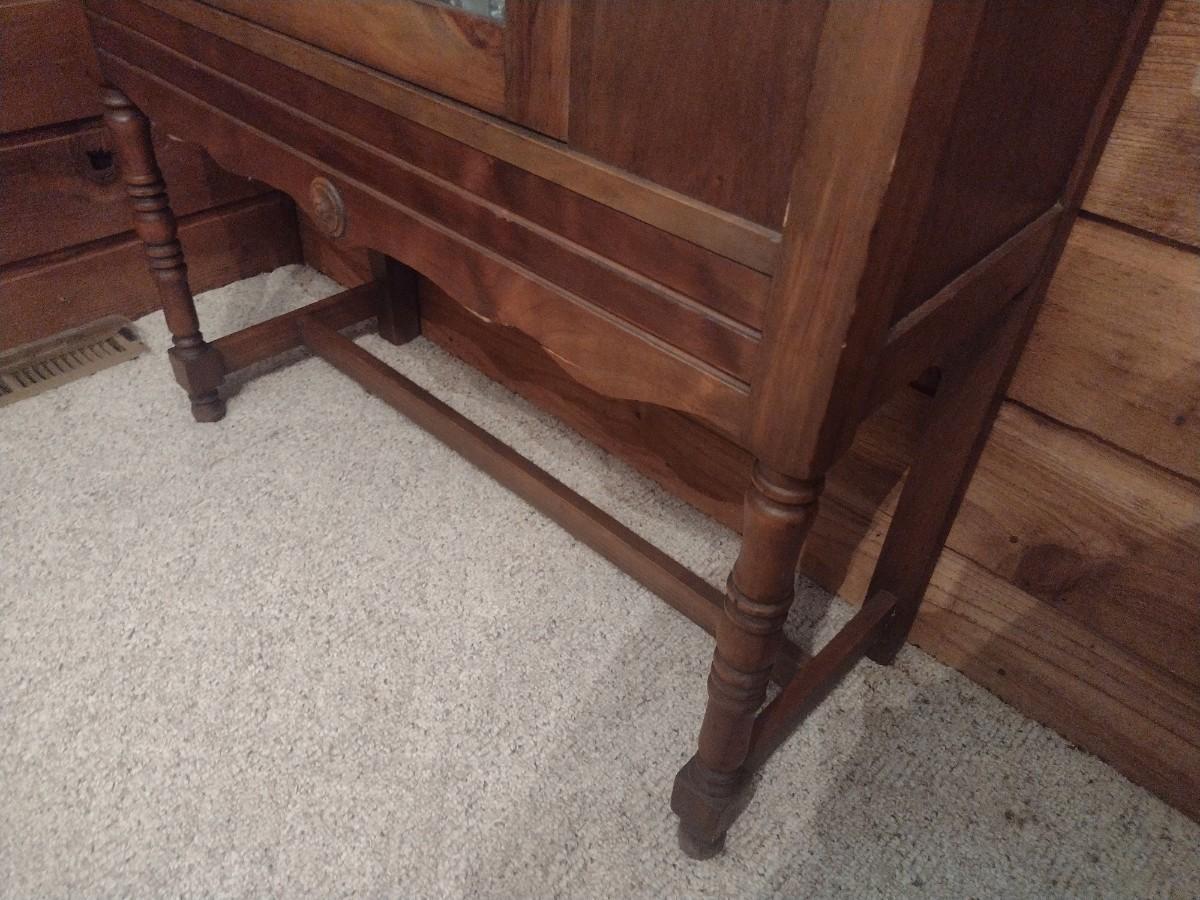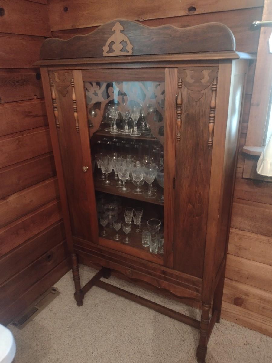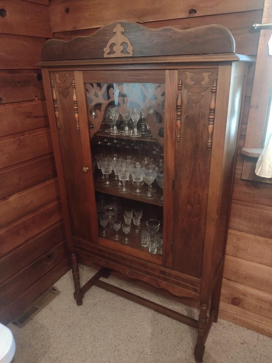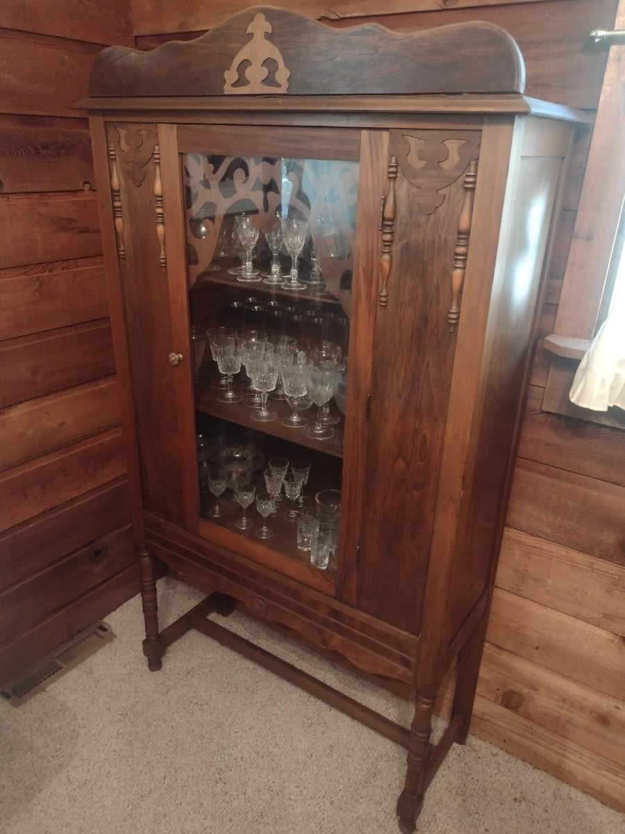 Antique Walnut Single Door Glass Front Hutch (No Contents)