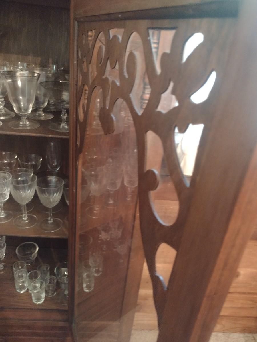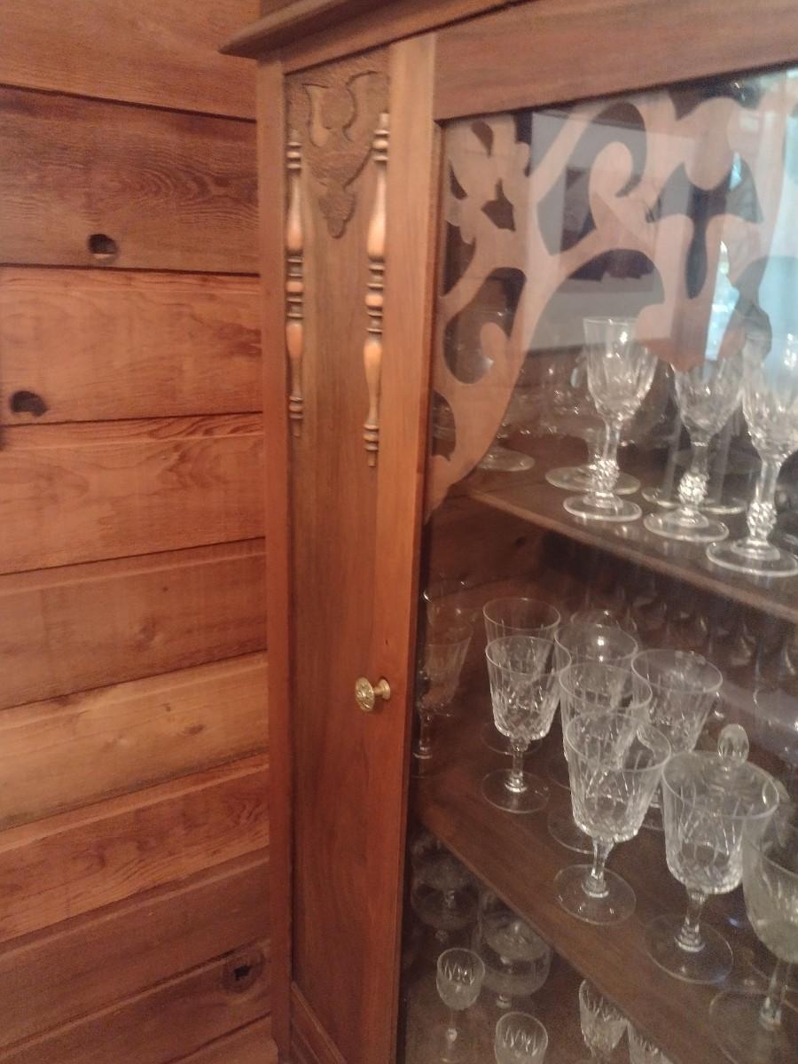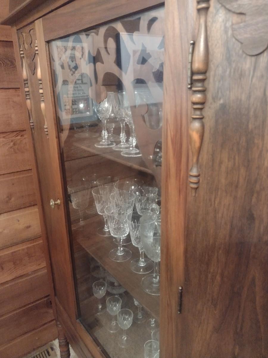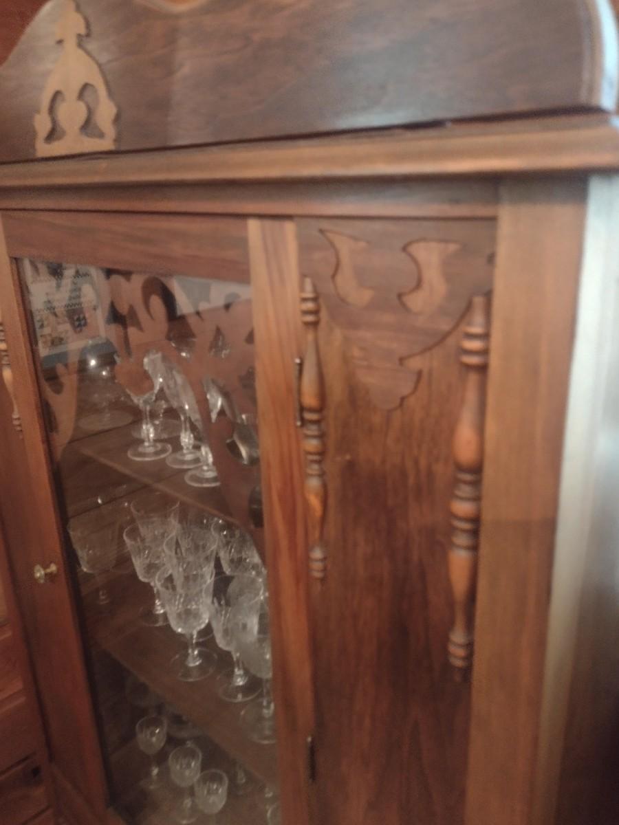 Antique Walnut Single Door Glass Front Hutch (No Contents)
