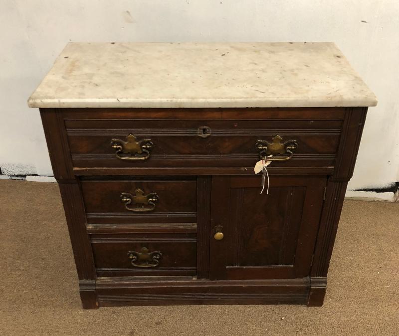 From the Cincinnati Furniture Company here is a true antique walnut washstand with a marble top...29 x 17"...Good condition...27" tall...