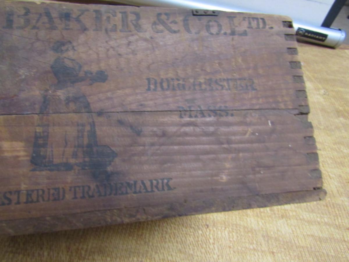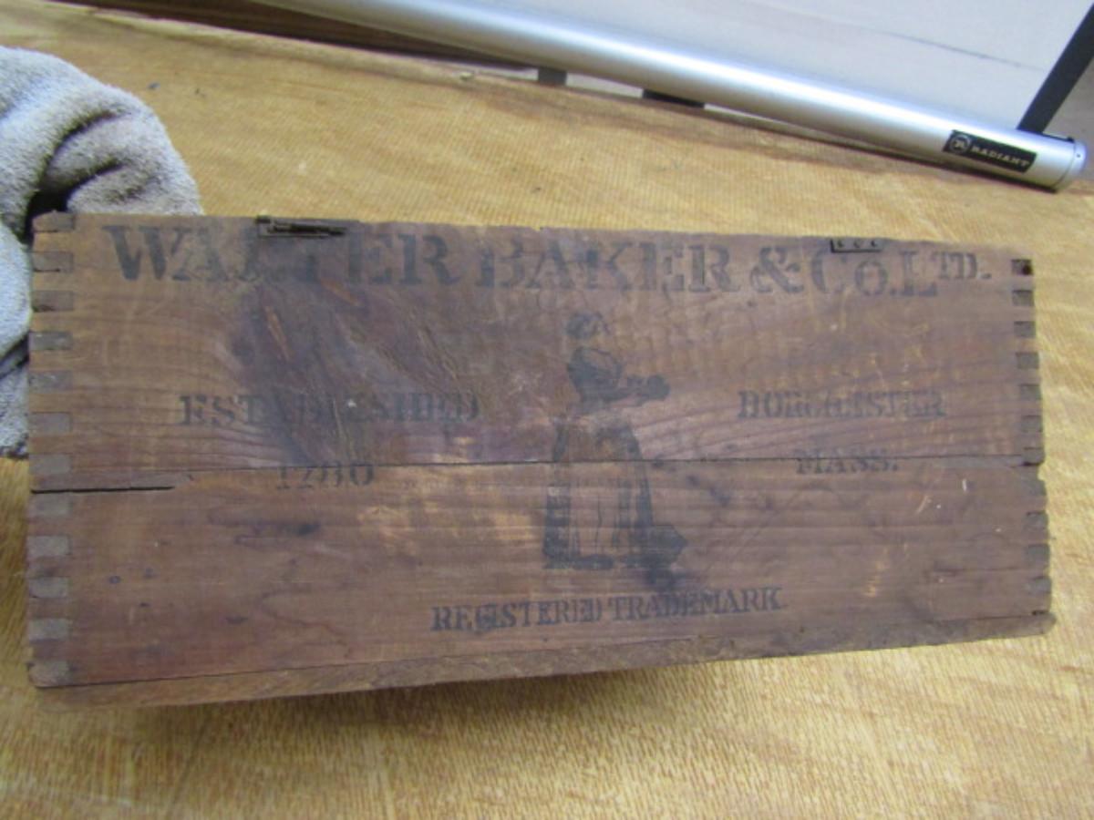 Antique Walter Baker & Co. Wooden Crate- Approx 11" x 9 1/2" x 5" Tall