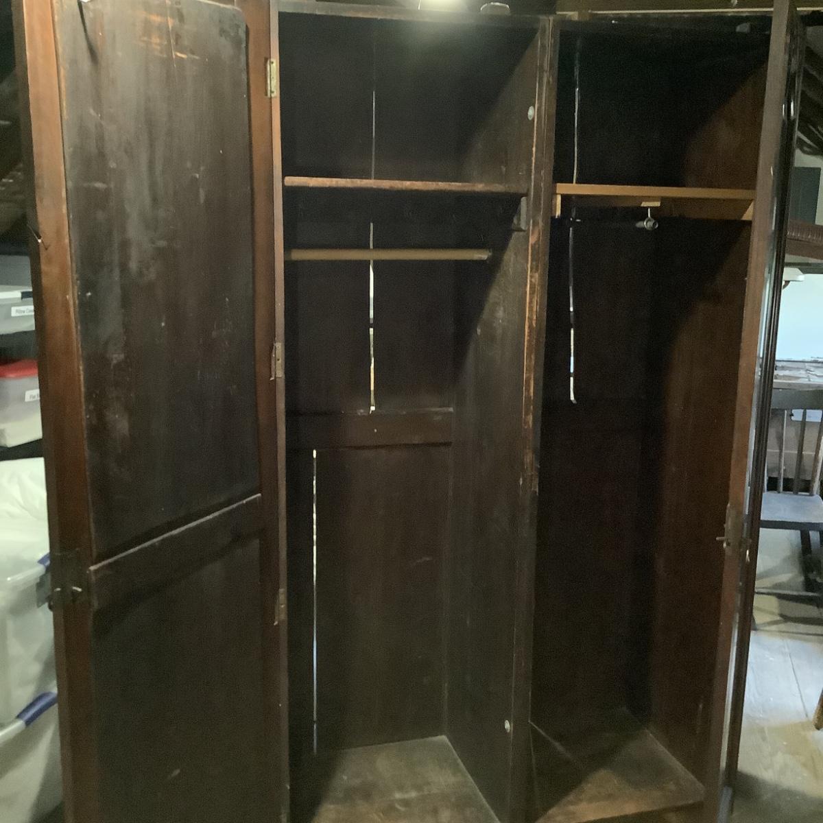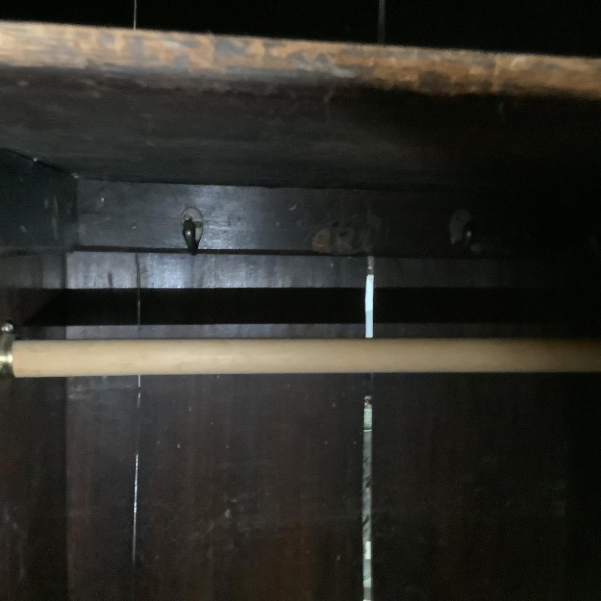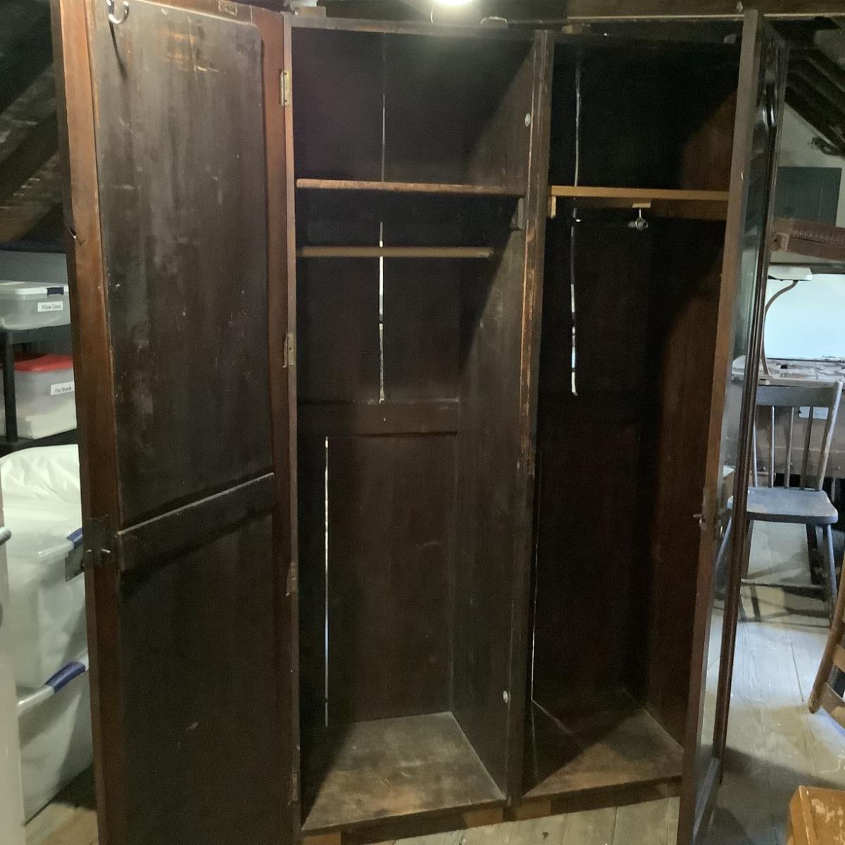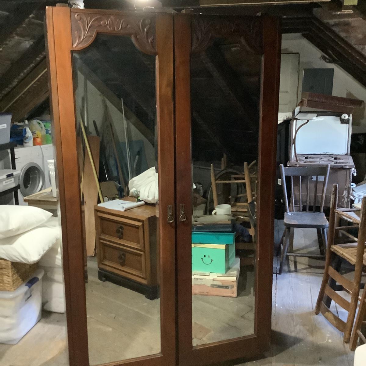 Antique wardrobe with beveled mirrored doors, real wood on the back, ornate, hooks, key holes