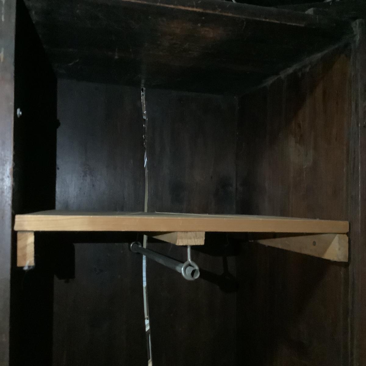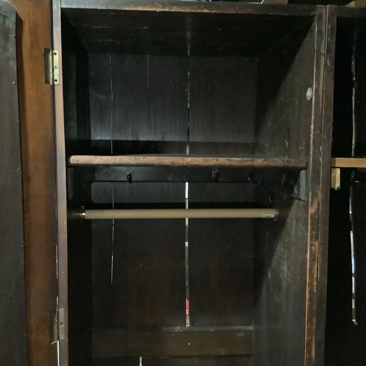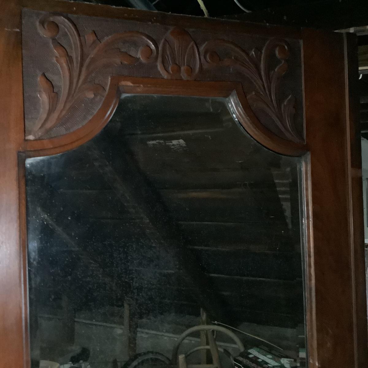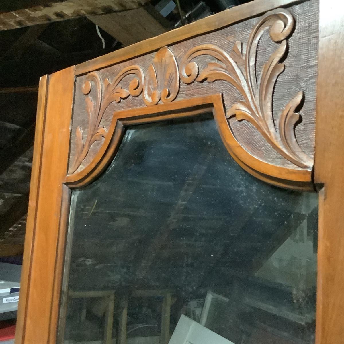 Antique wardrobe with beveled mirrored doors, real wood on the back, ornate, hooks, key holes