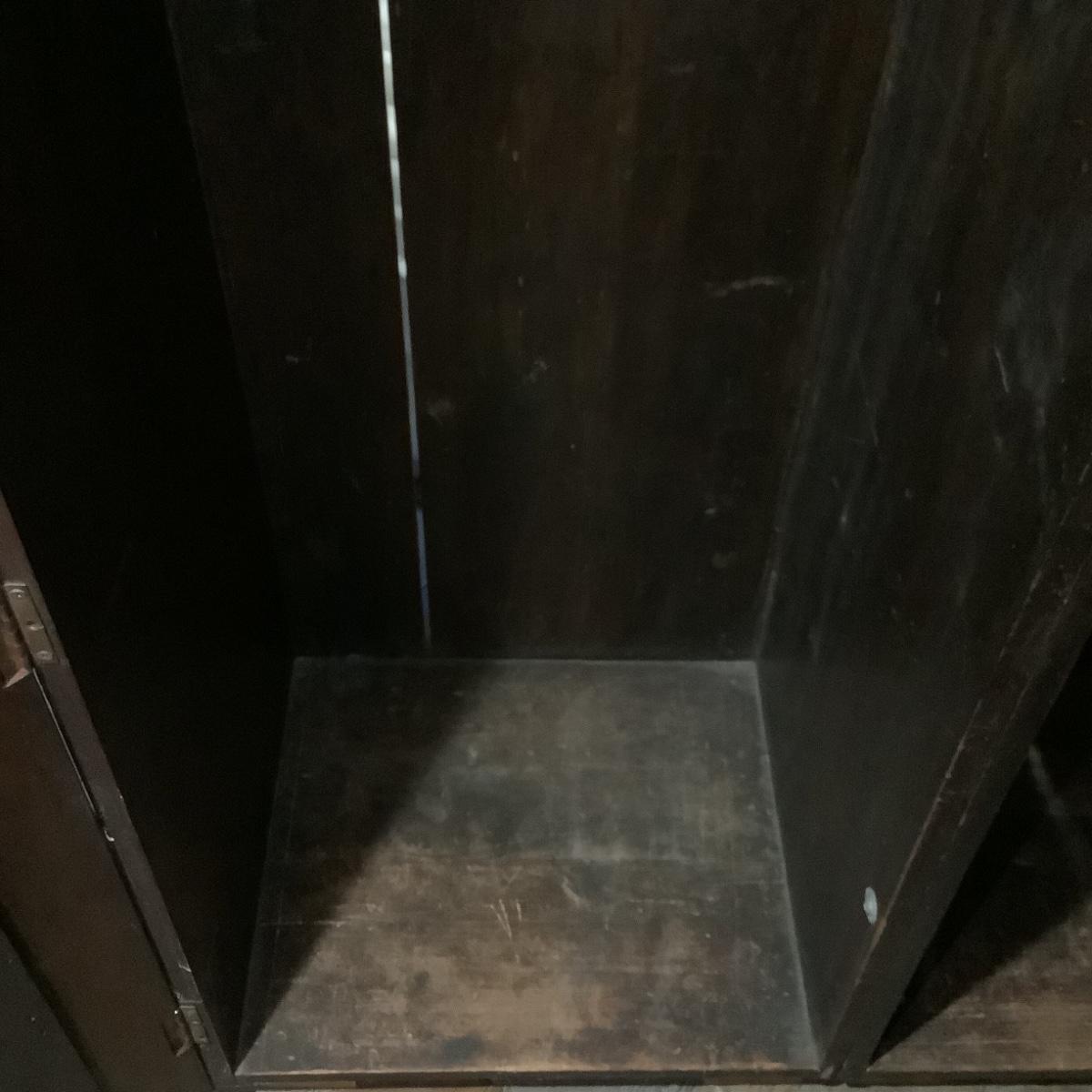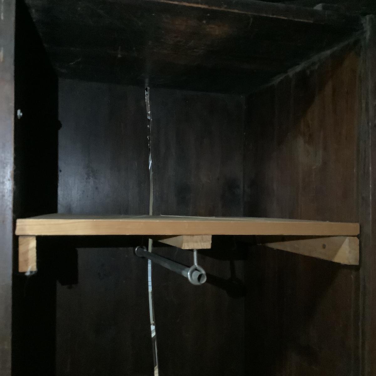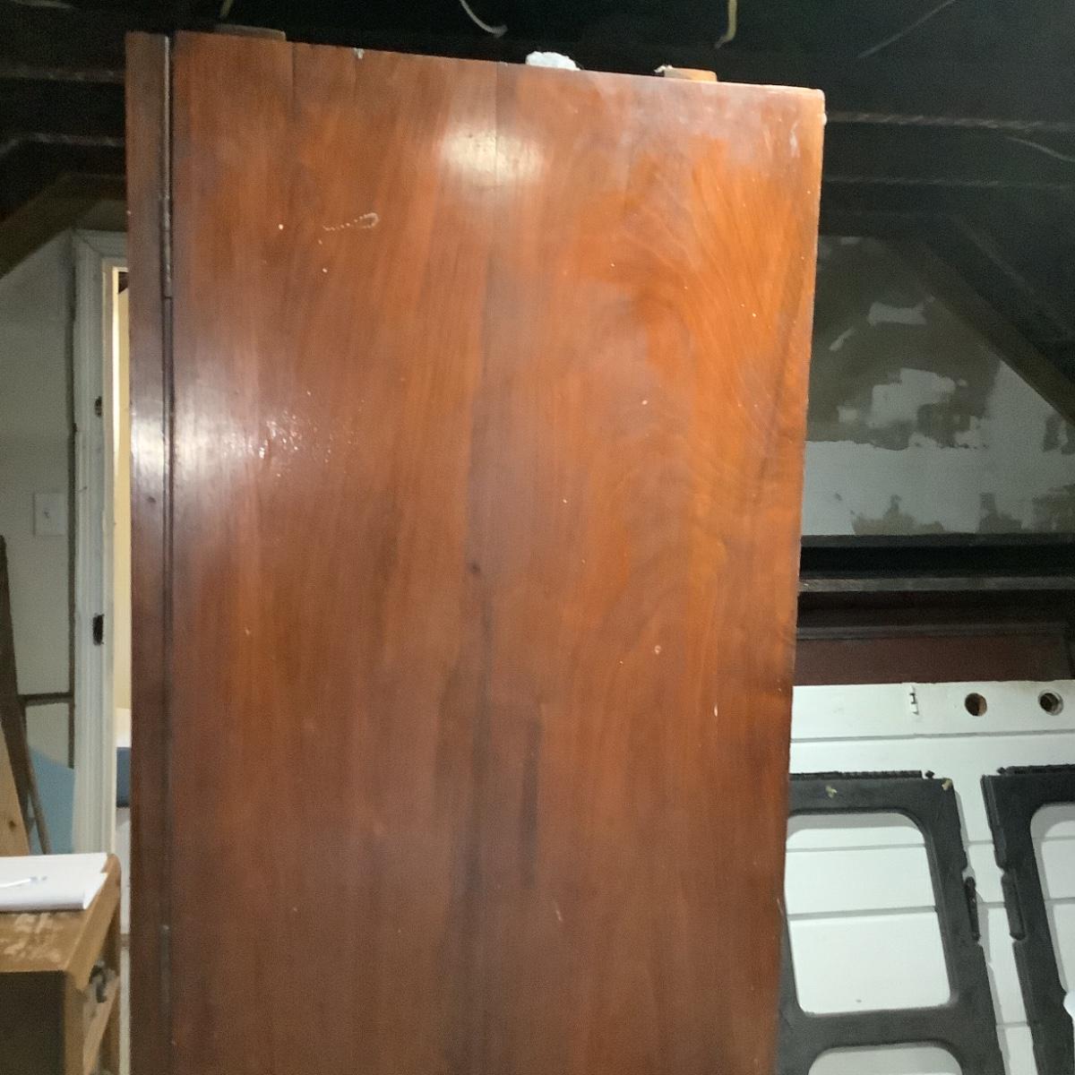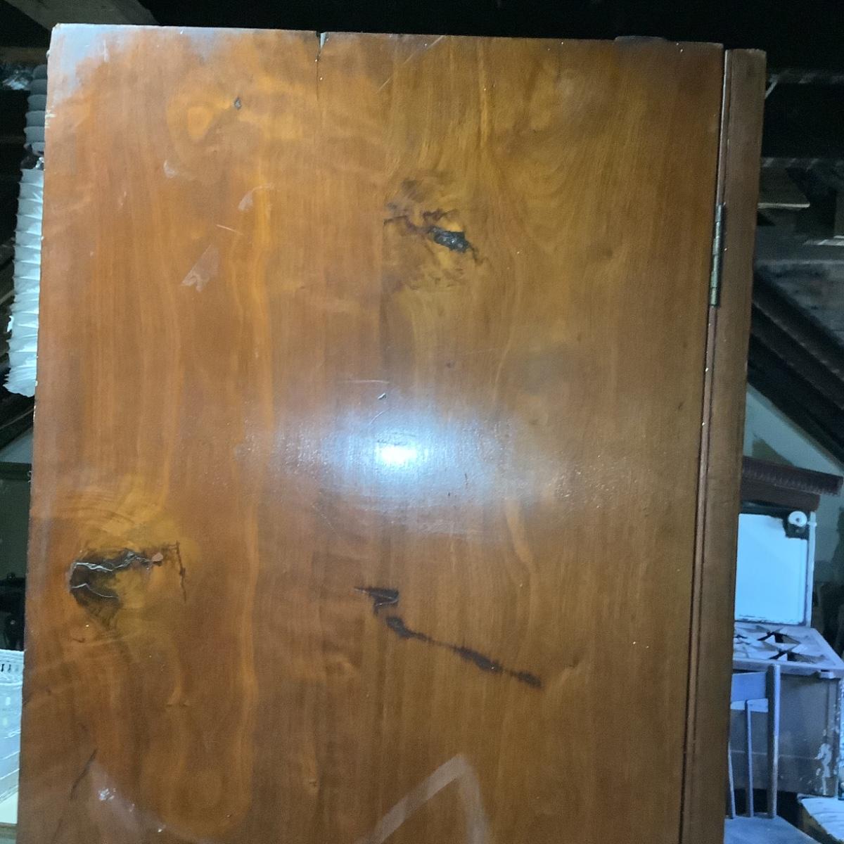Antique wardrobe with beveled mirrored doors, real wood on the back, ornate, hooks, key holes