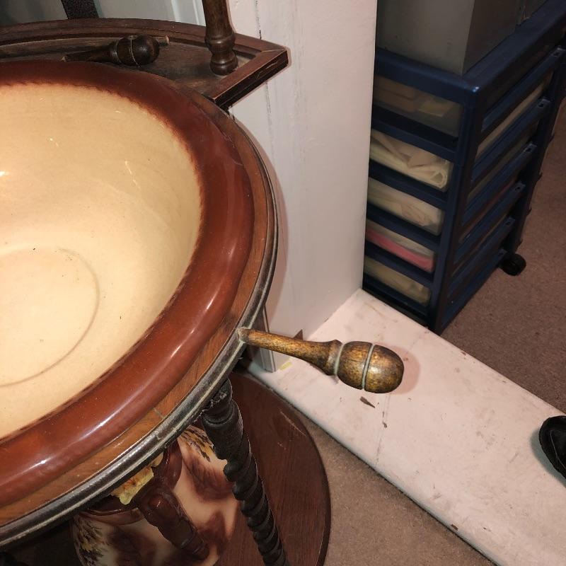 This unique antique wash sink with pitcher and mirror is a neat piece for any collection it did have a broken wash rag rack but all pieces have been fixed. This piece will definently start alot of conversations˜‰