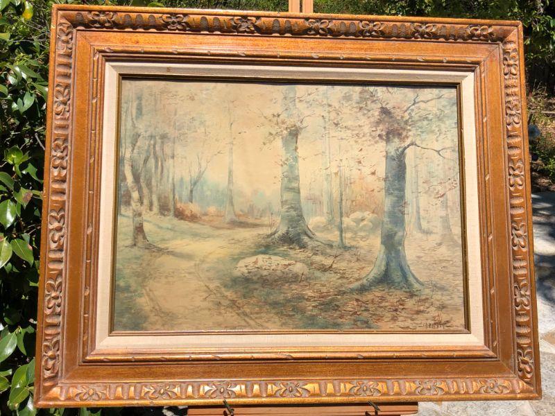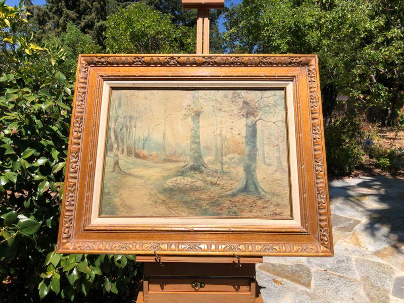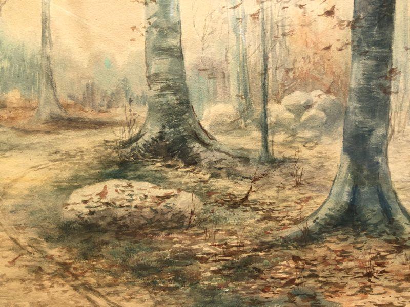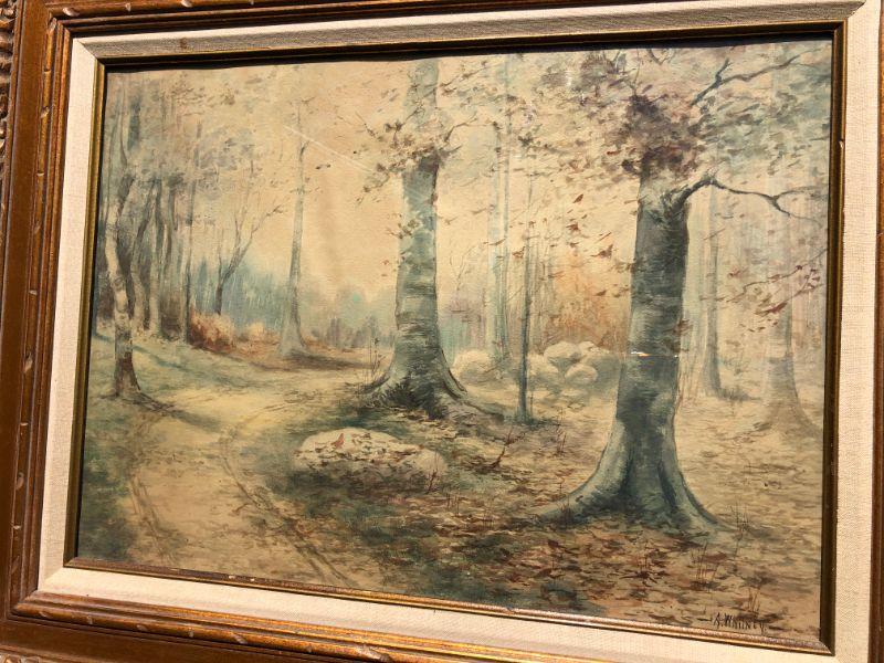 Antique Watercolor Forest Trail Original Painting by A. Whitney