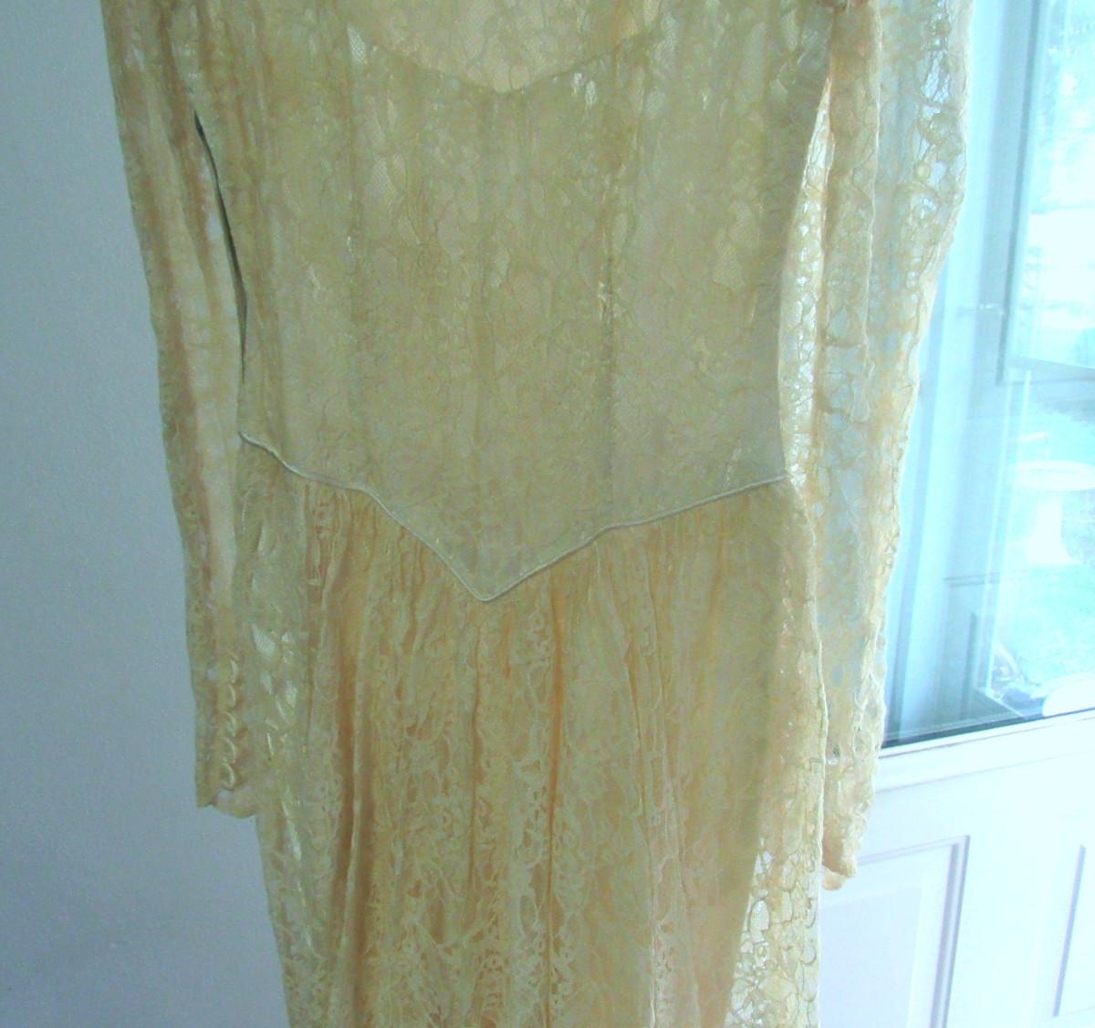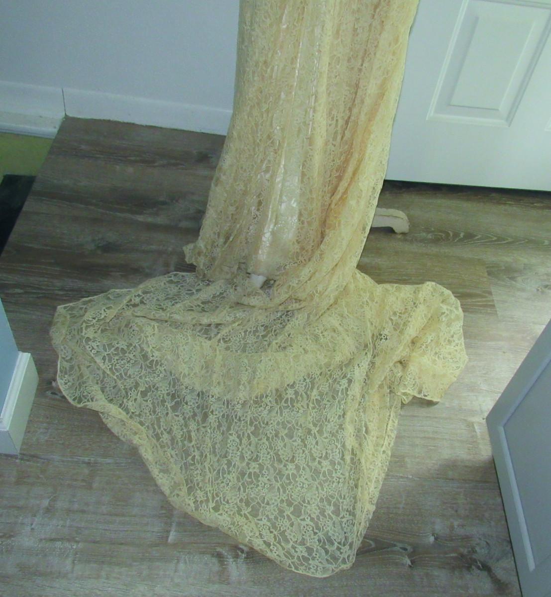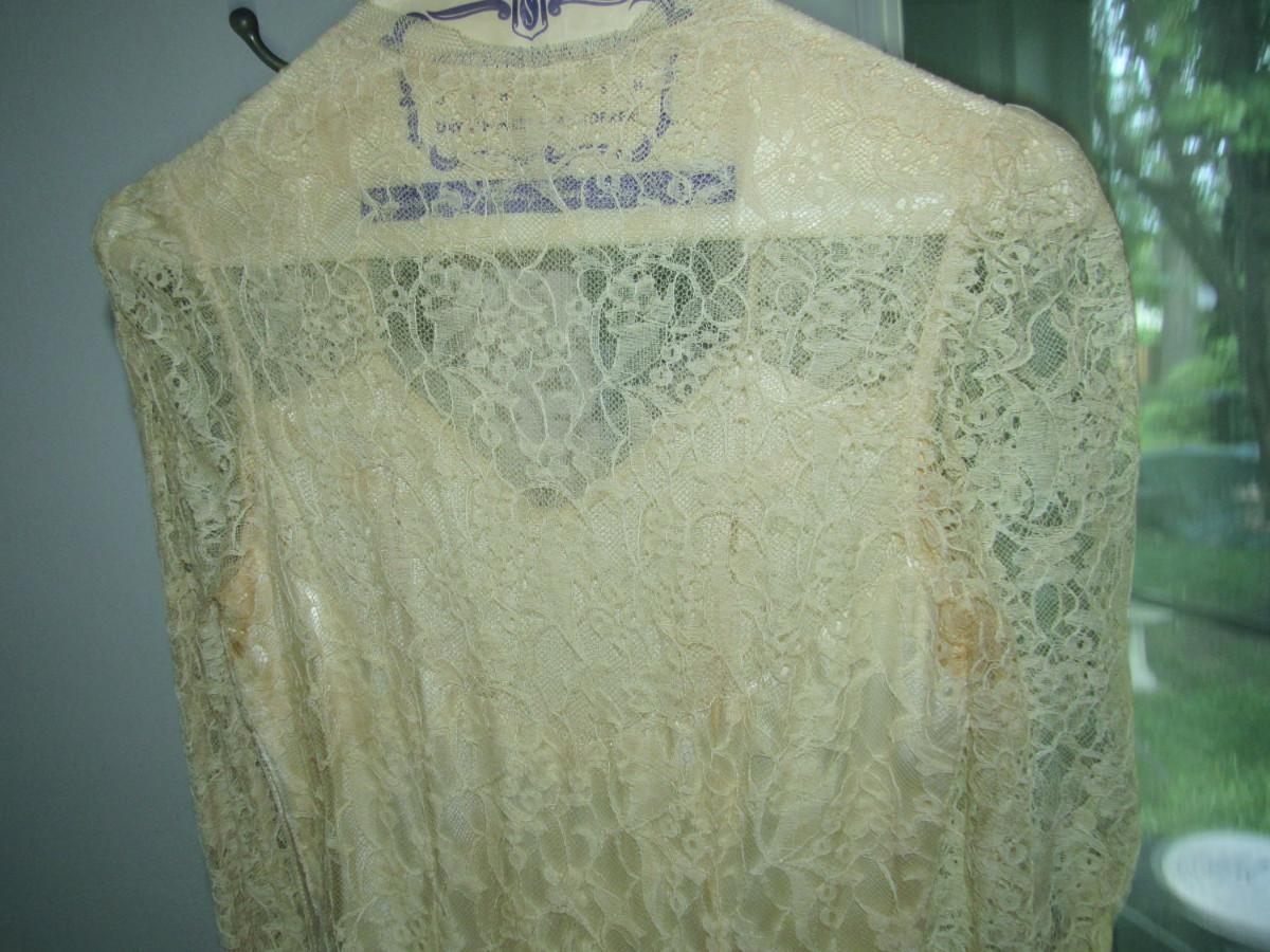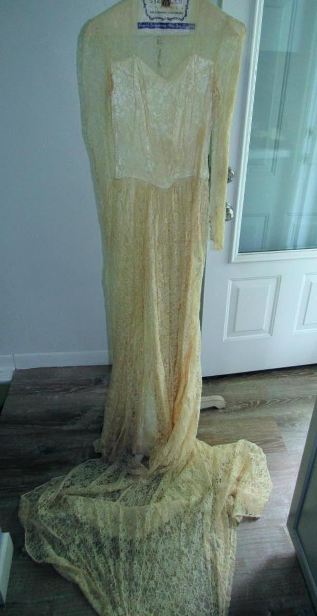 Lot 83: Antique Wedding Dress, Off White, Overall Lace, Nice Train