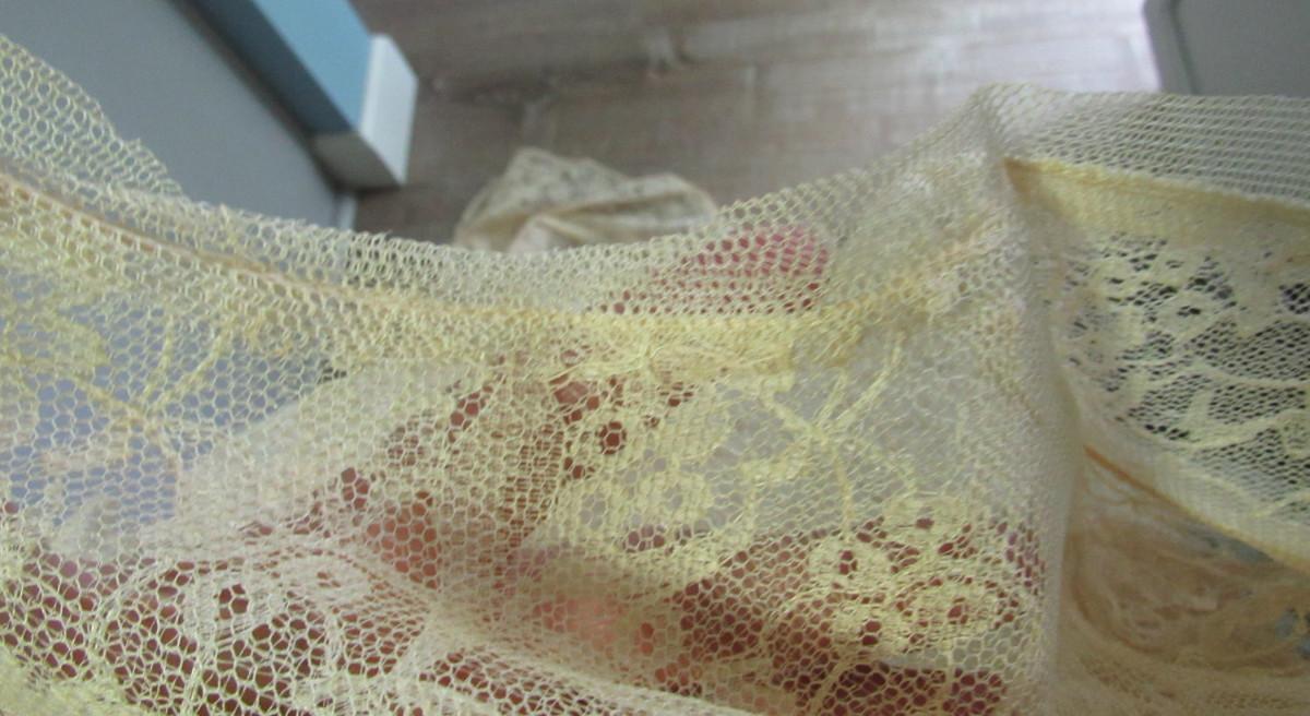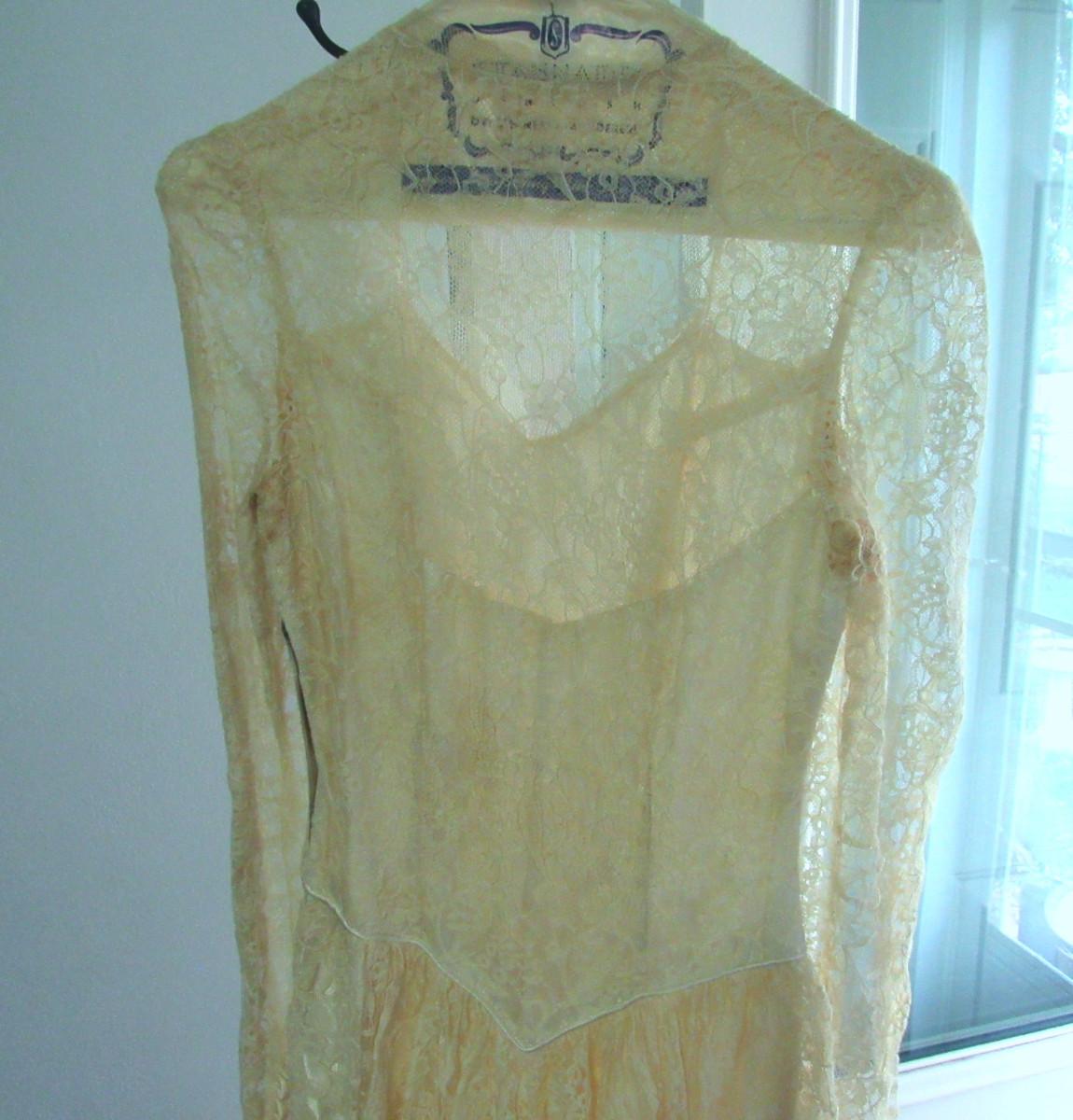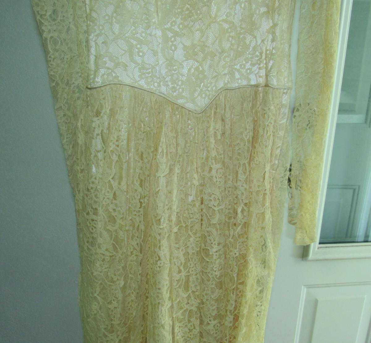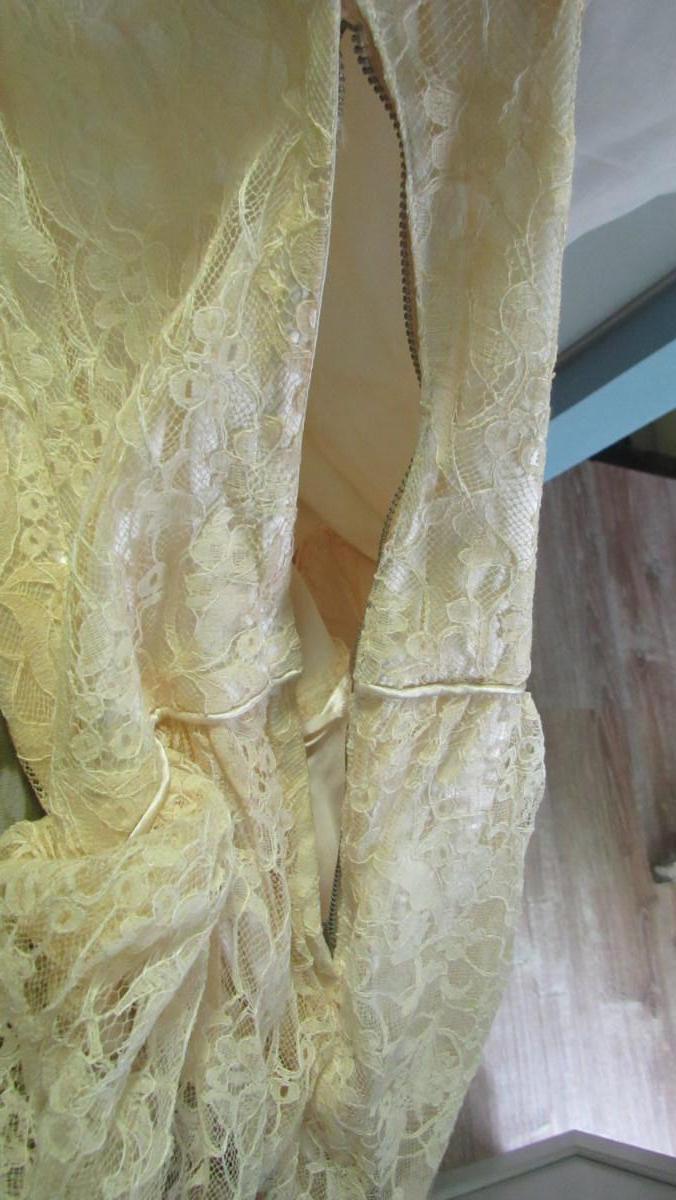 Lot 83: Antique Wedding Dress, Off White, Overall Lace, Nice Train