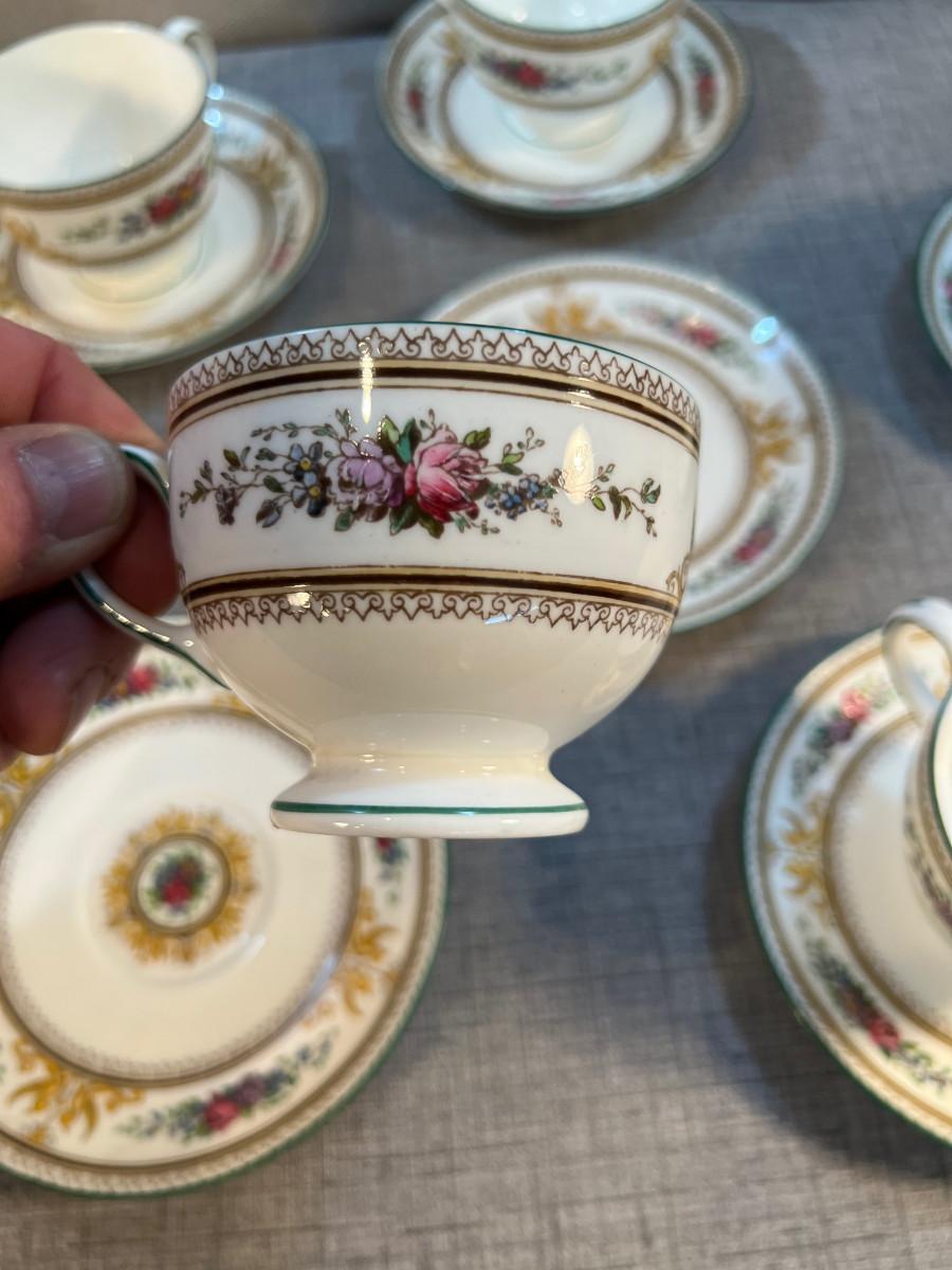 Antique Wedgewood Teacups w/Saucers Columbia. Cups and saucers are in excellent condition with some light wear from use. 5 teacups, 6 saucers.