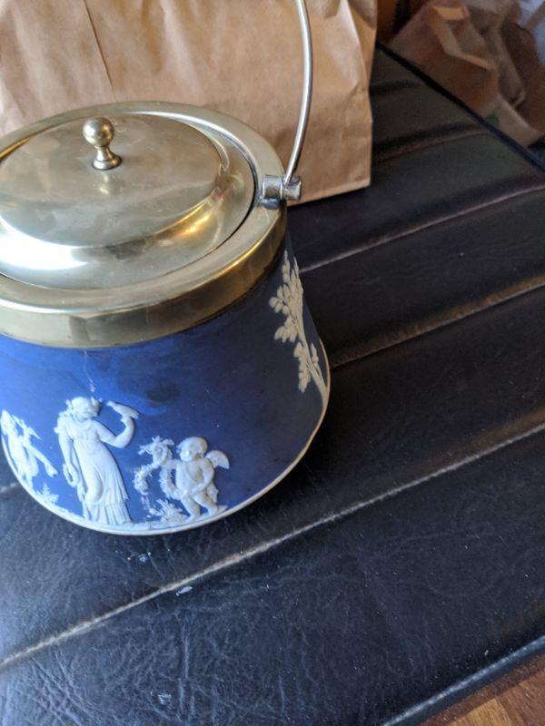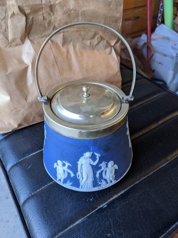 Antique Wedgwood Biscuit Jar Blue Jasper