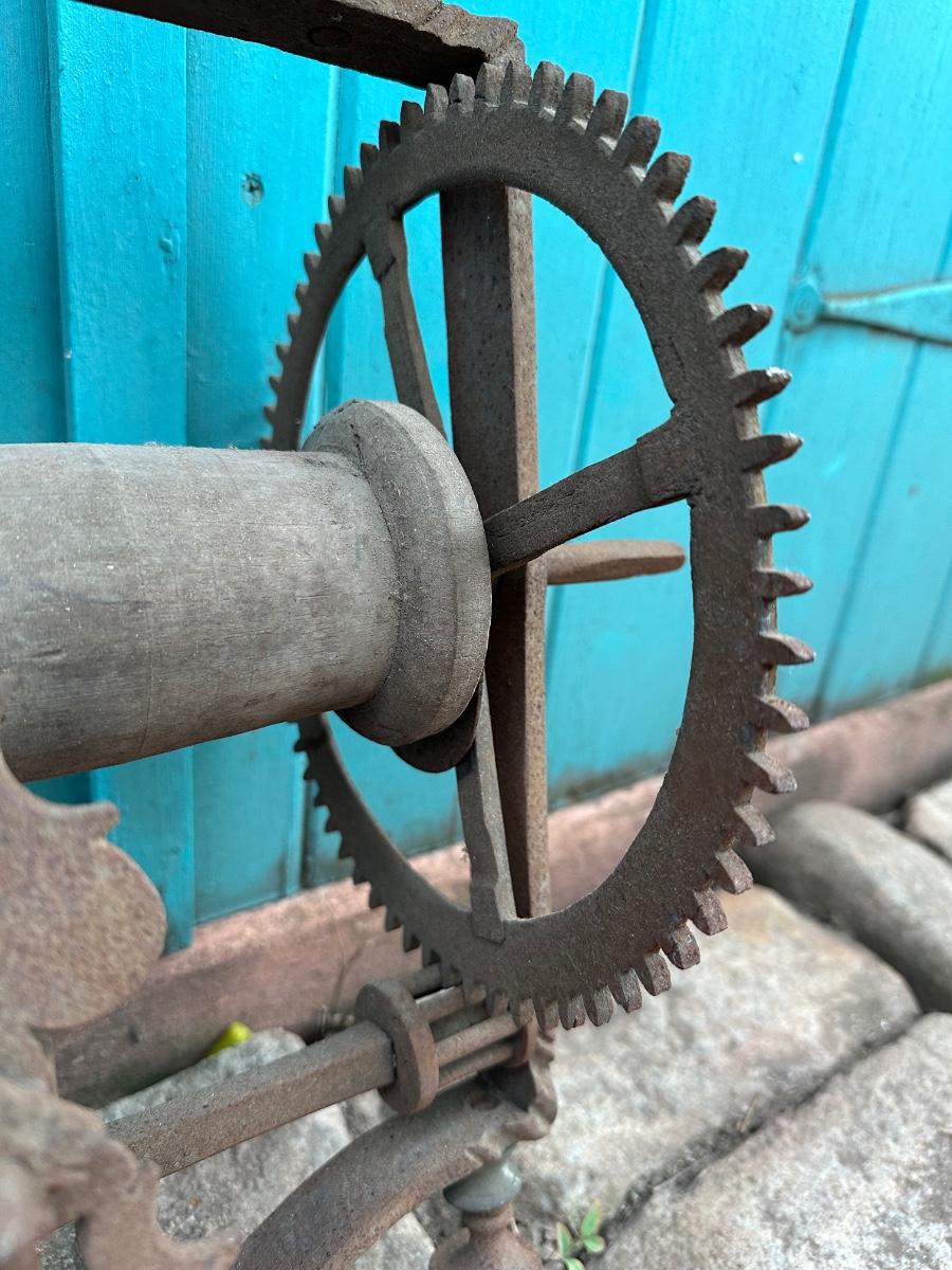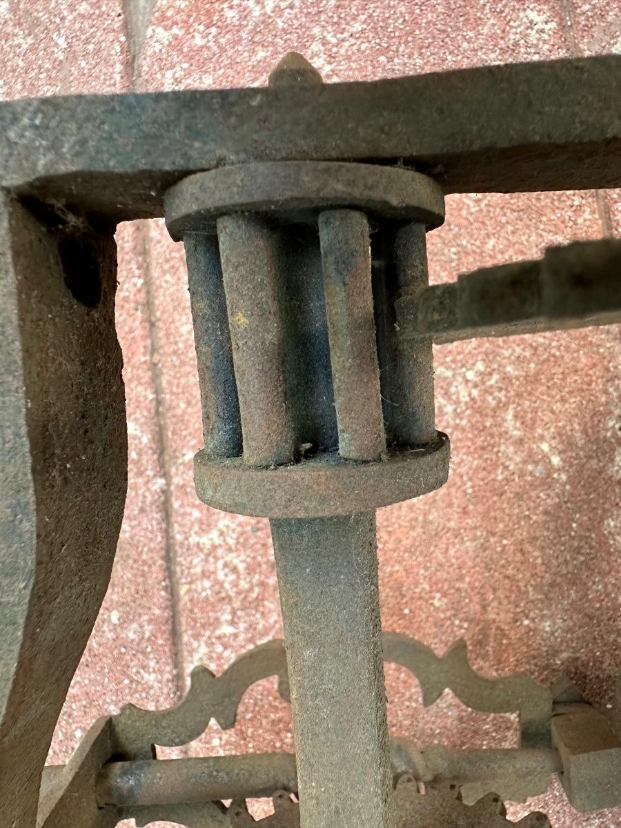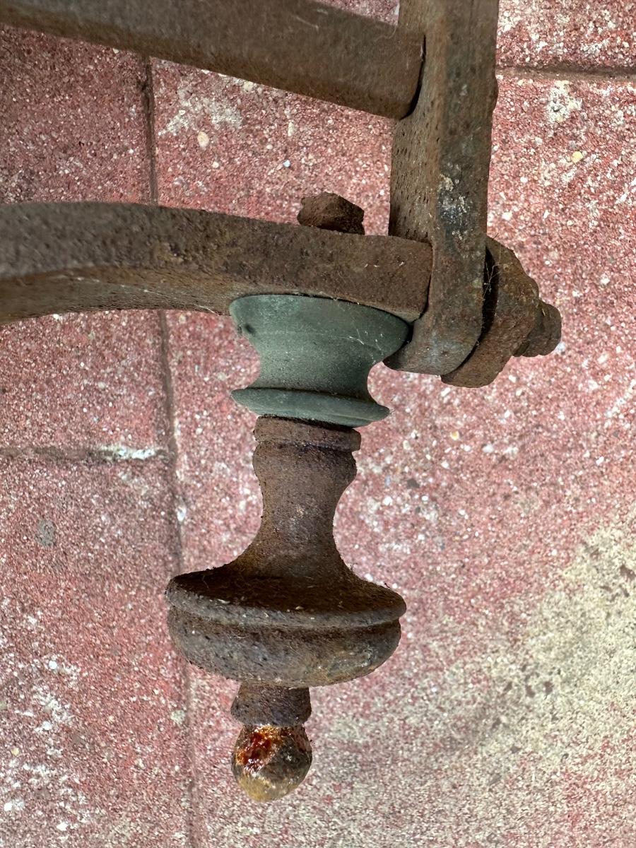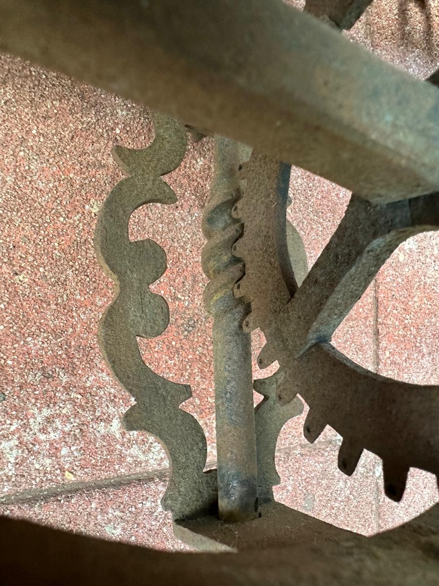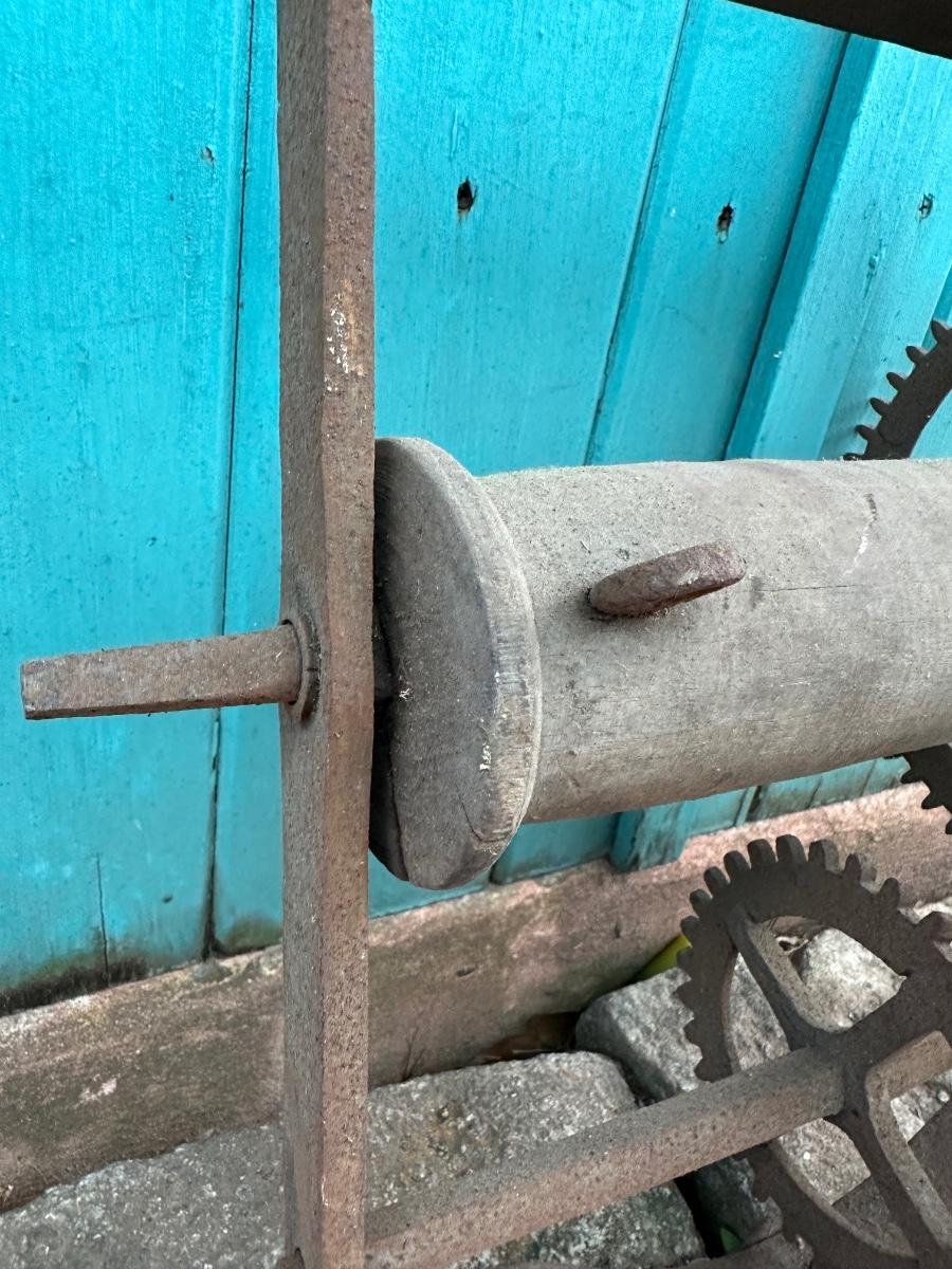 Wrought iron antique weight-driven spit jack. 19” H