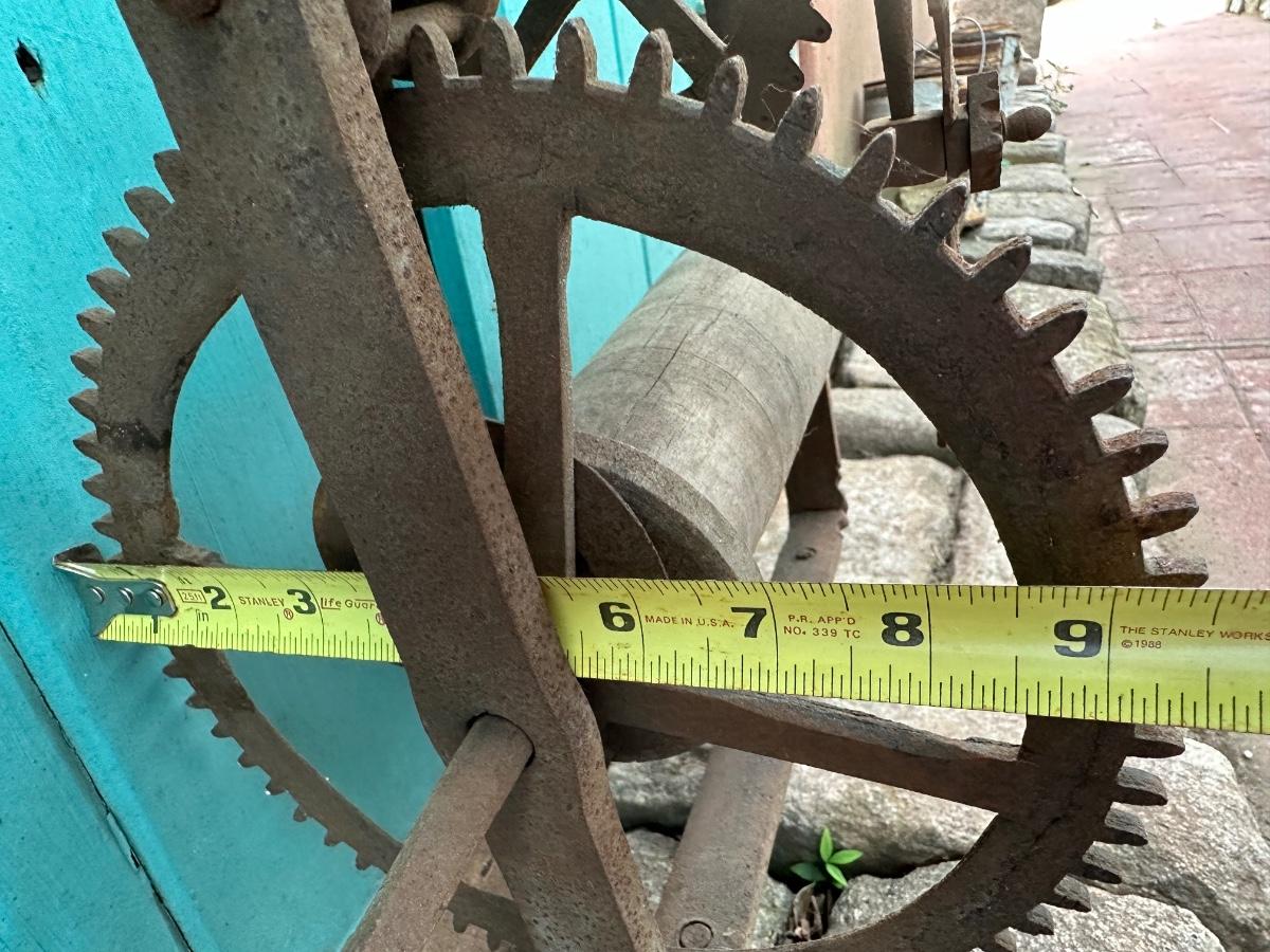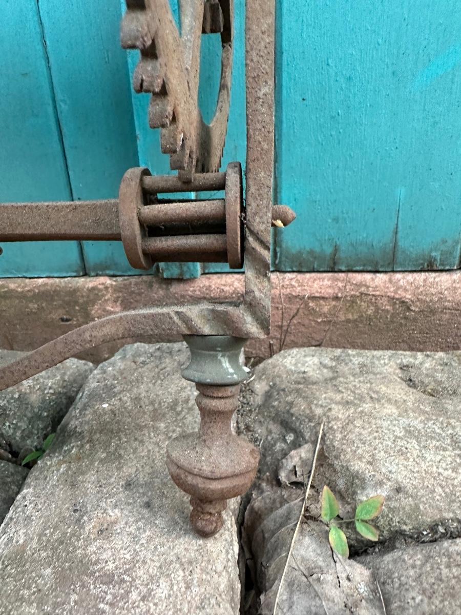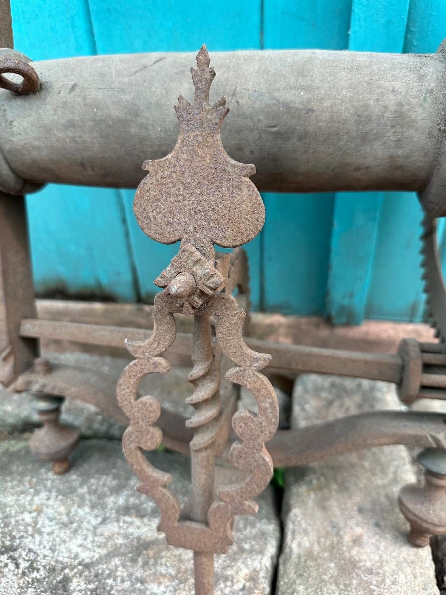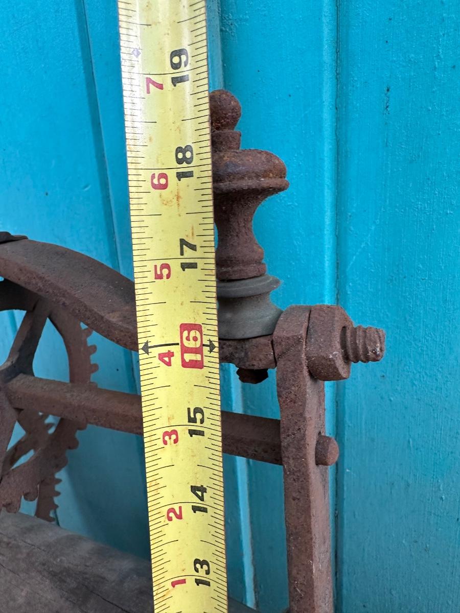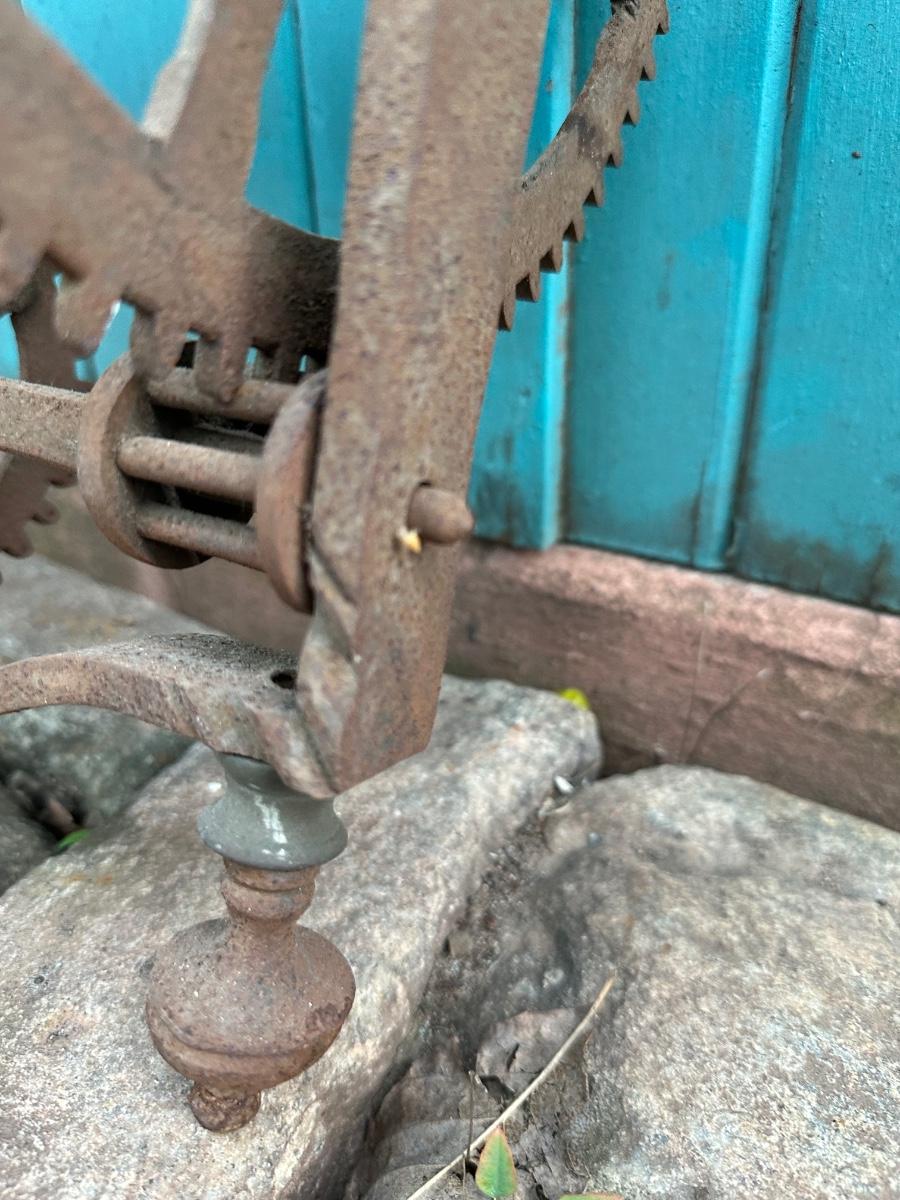 Wrought iron antique weight-driven spit jack. 19” H