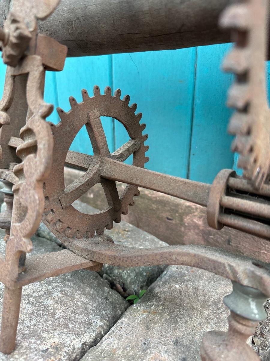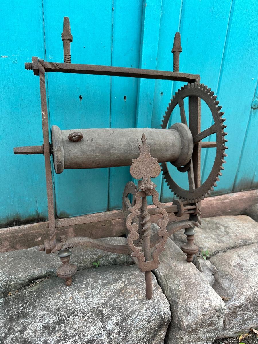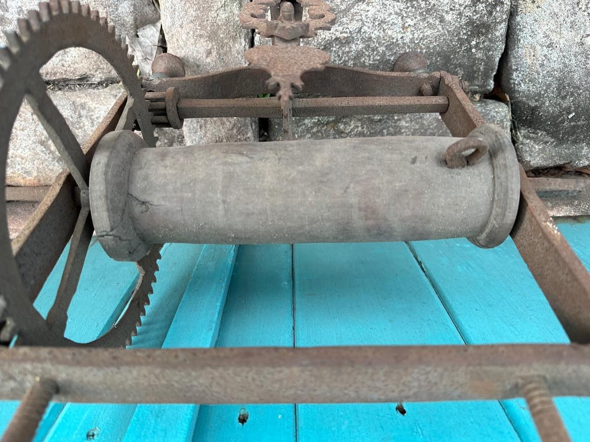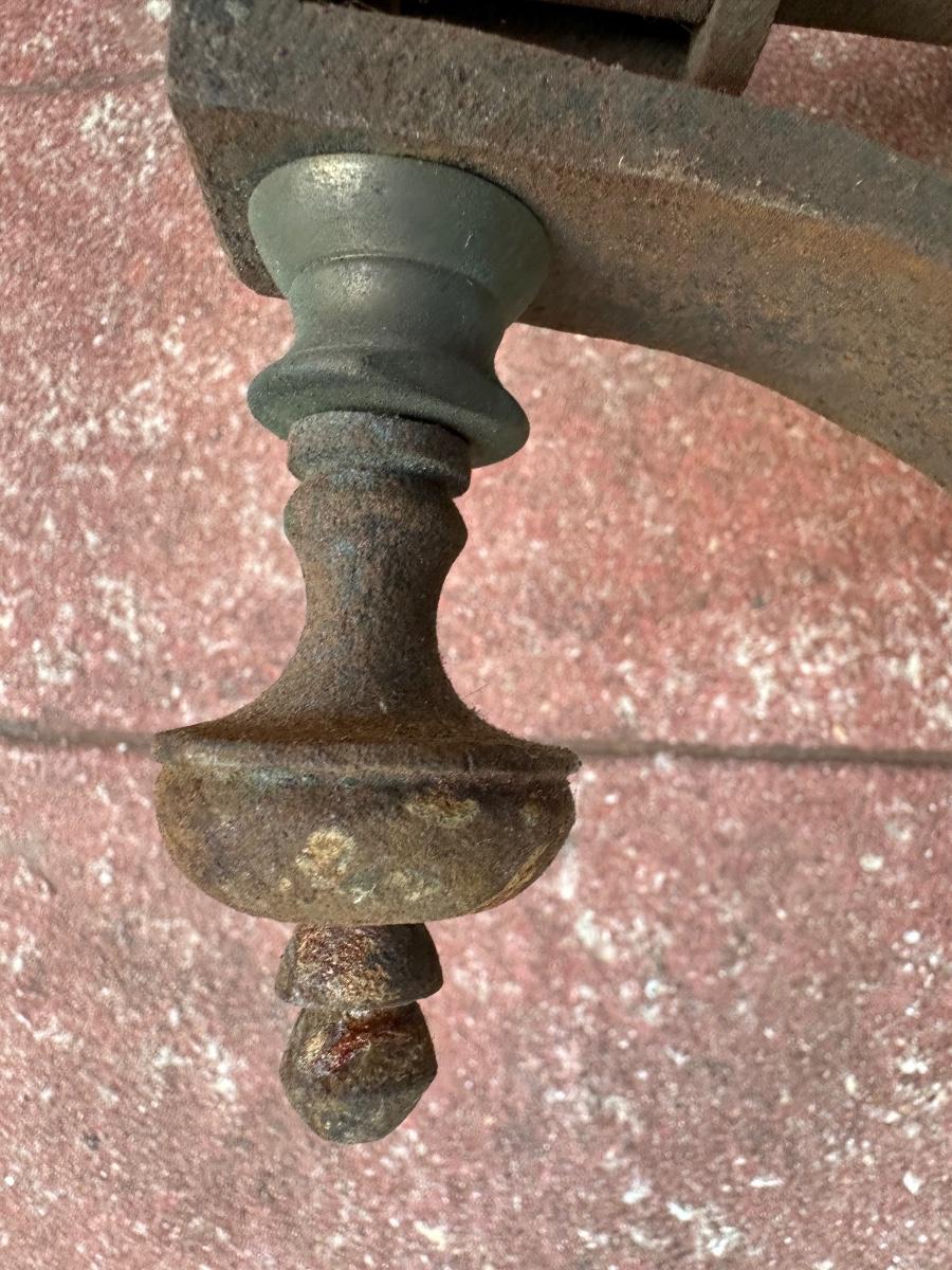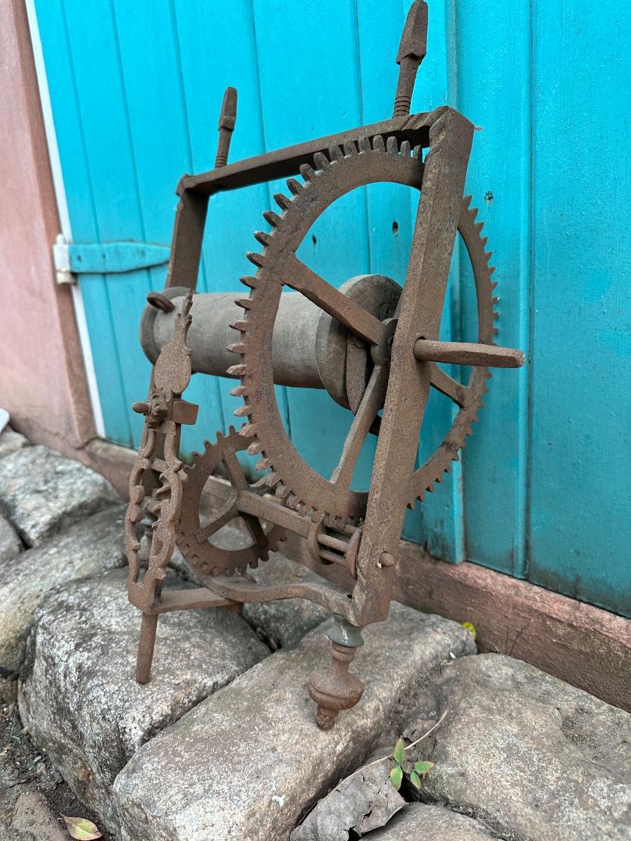 Wrought iron antique weight-driven spit jack. 19” H