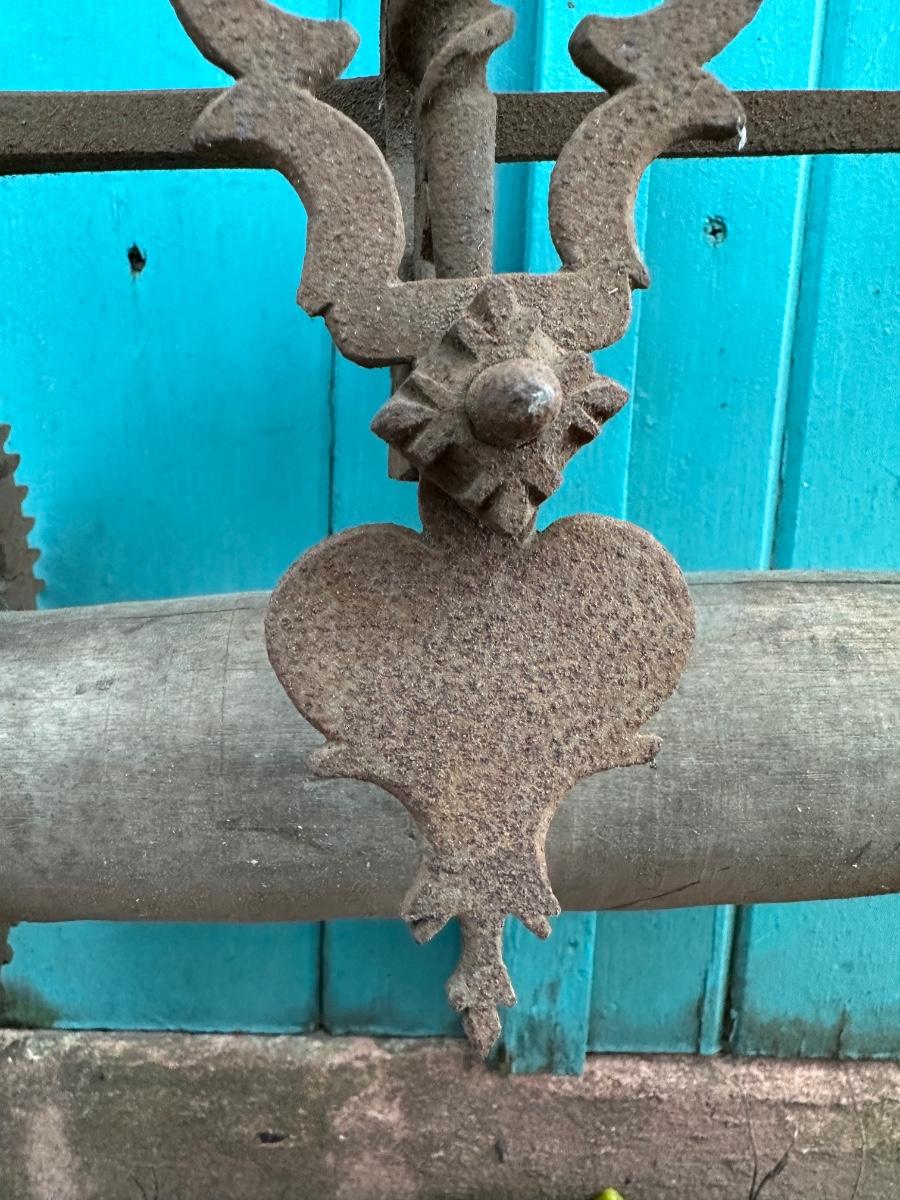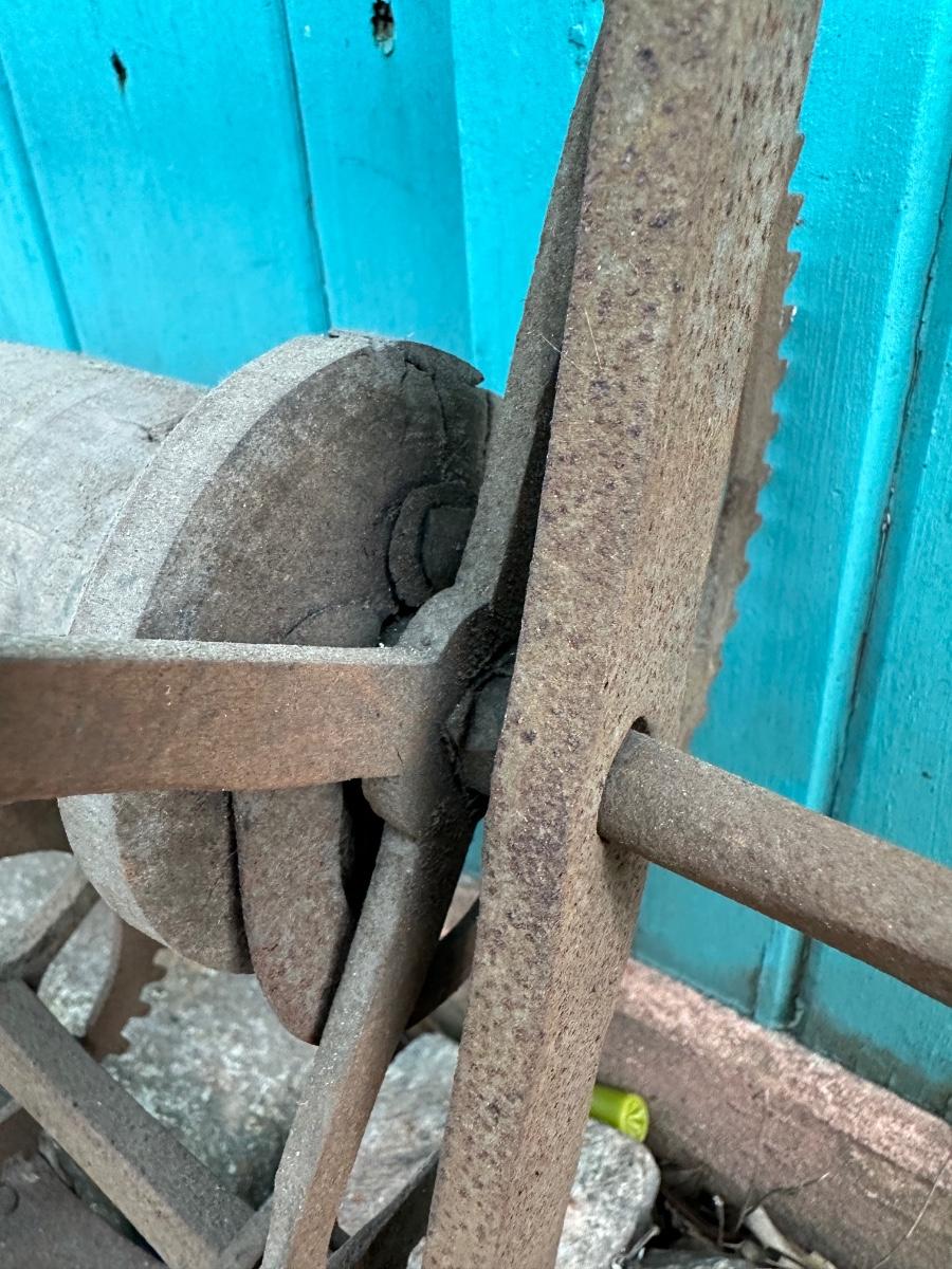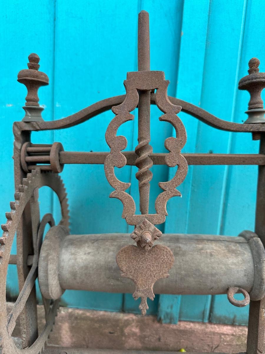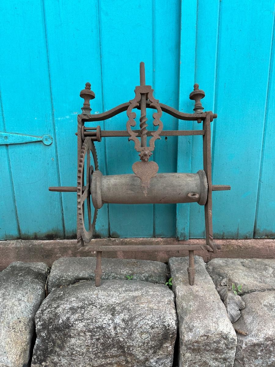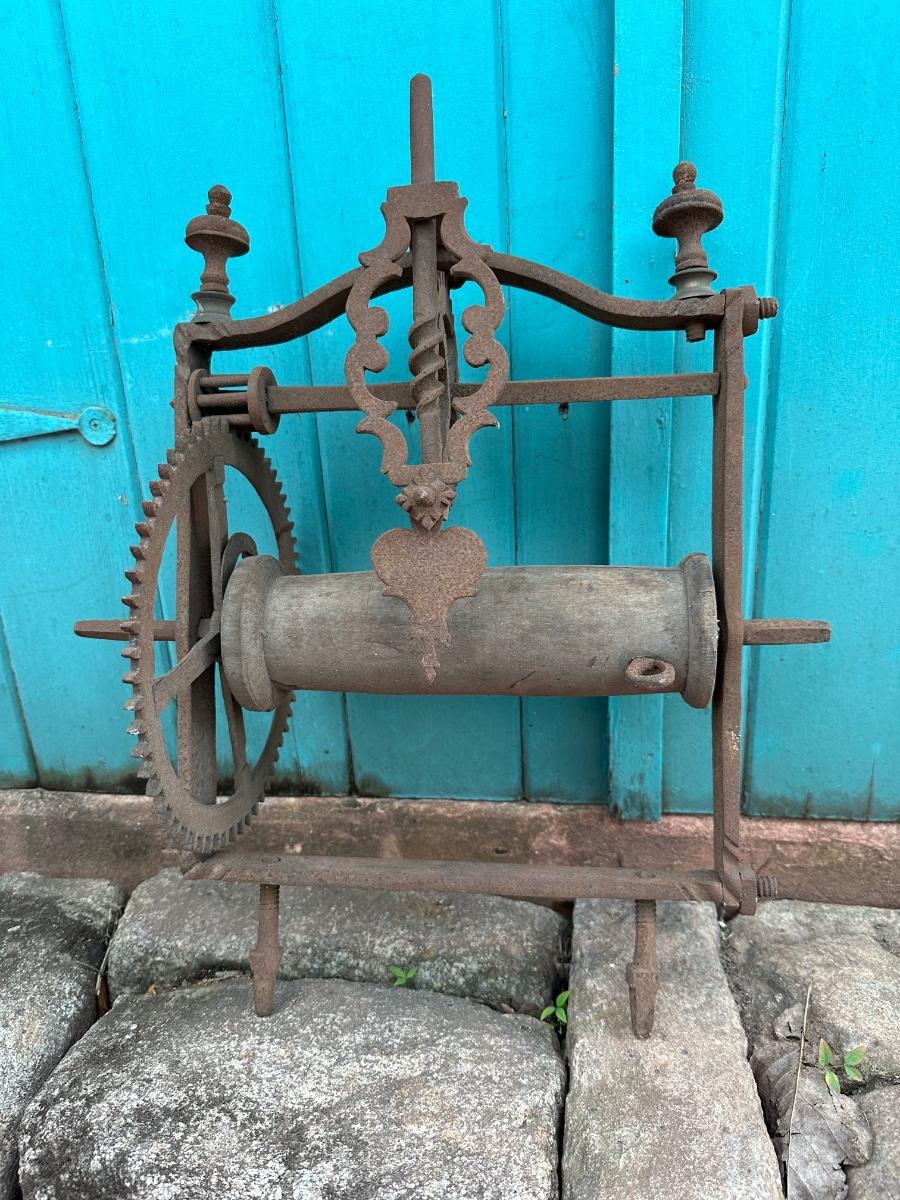 Wrought iron antique weight-driven spit jack. 19” H