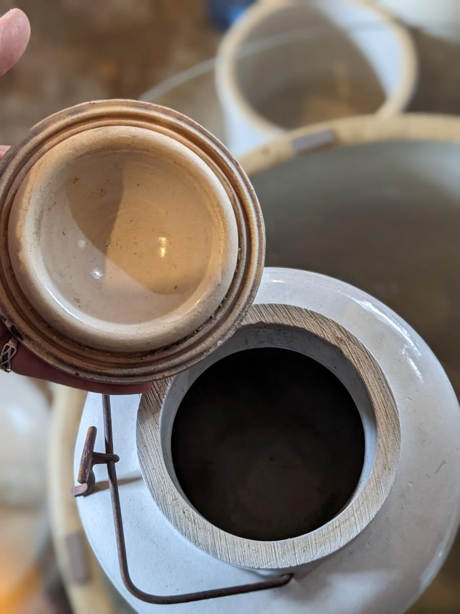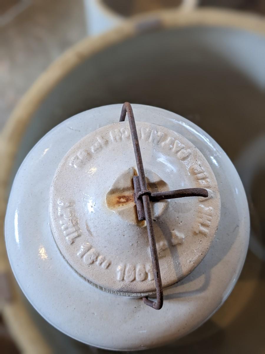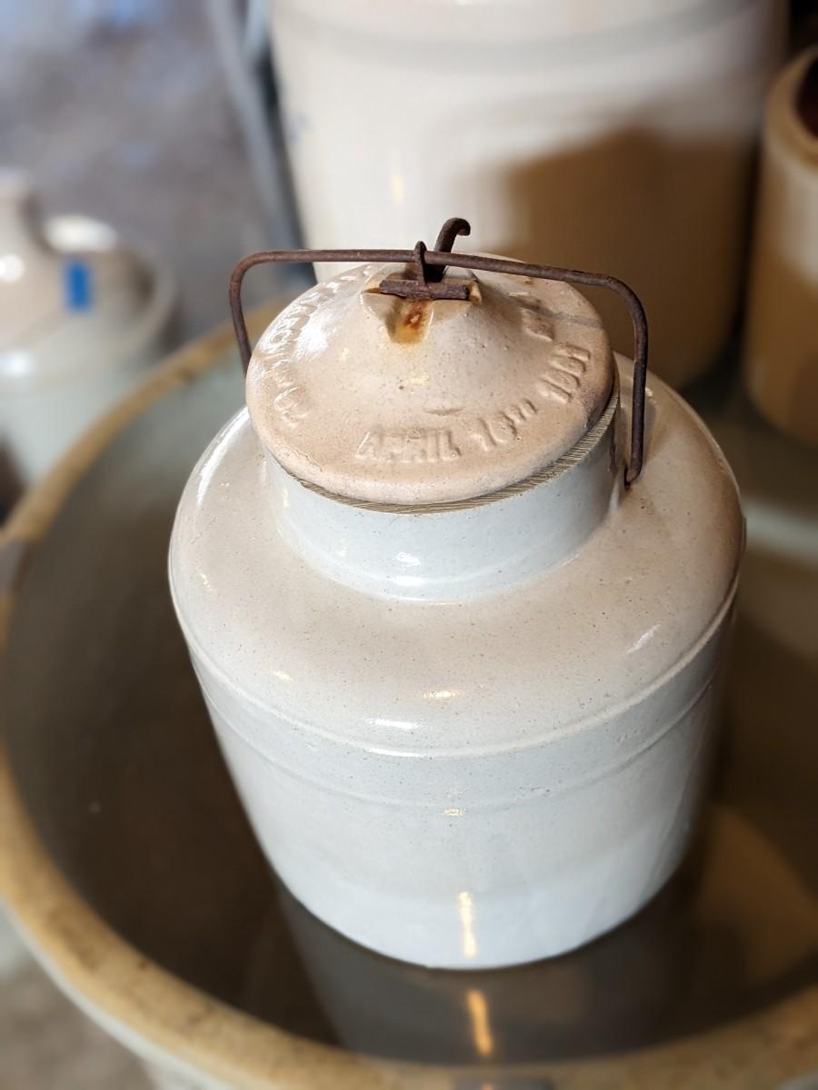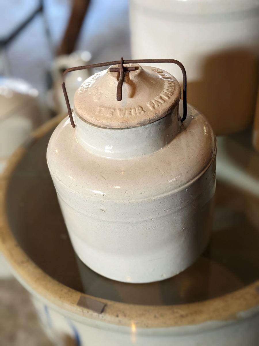 Antique Weir Stoneware Crock Jug with Metal Lock Clasp