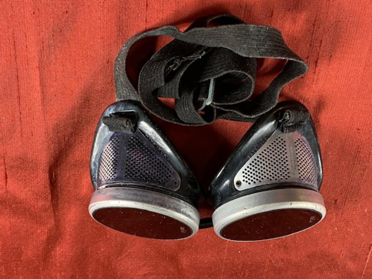 This auction lot is for some Antique Welding Goggles - Steam Punk Look. This is a pair of very old welders' glasses. the dark olive lenses are marked " WWSH or HSMM". The rubber has areas of white debris and the elastic traps have lost some spring but seem complete. They are in good condition for the age and use. Strong Steam Punk Vibe.