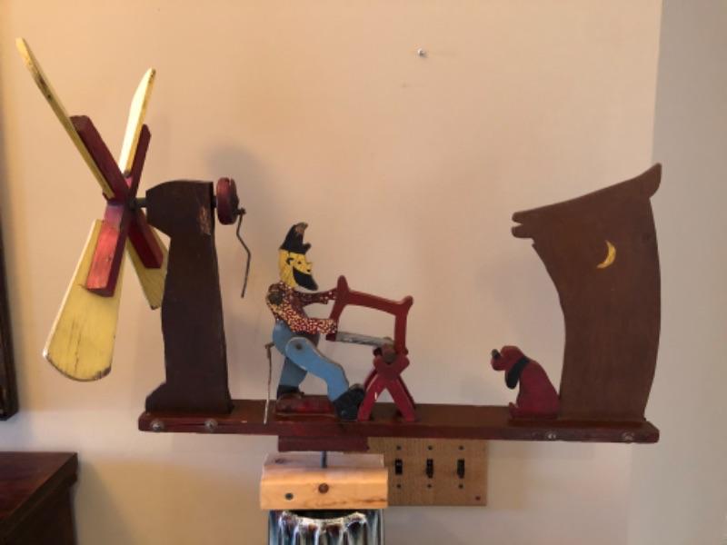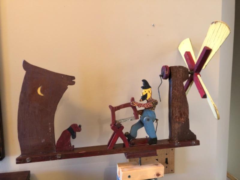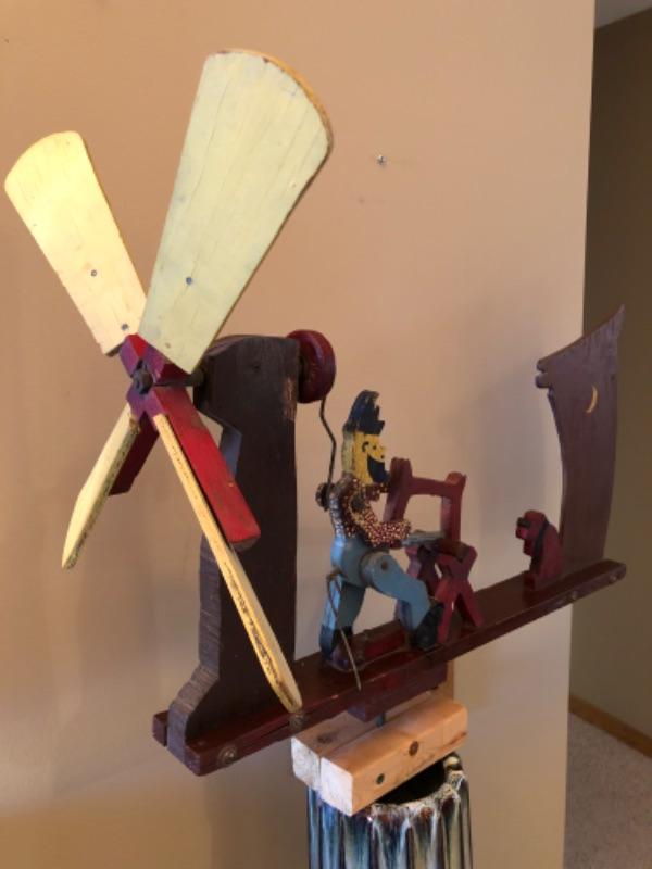 Antique Whirligig in good condition. The metal piece that engages the action is broken but easily replaced or mended.