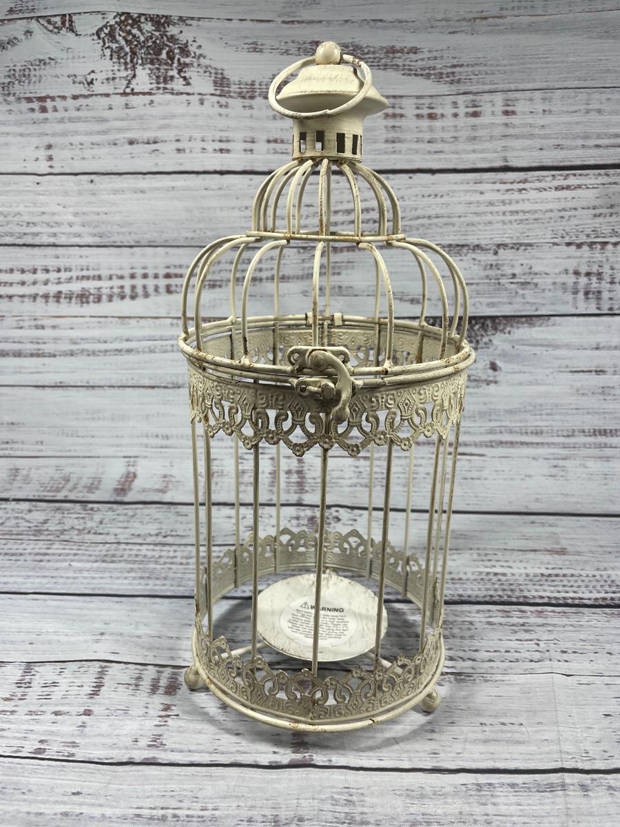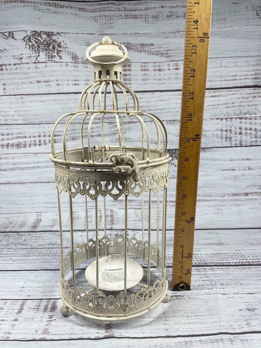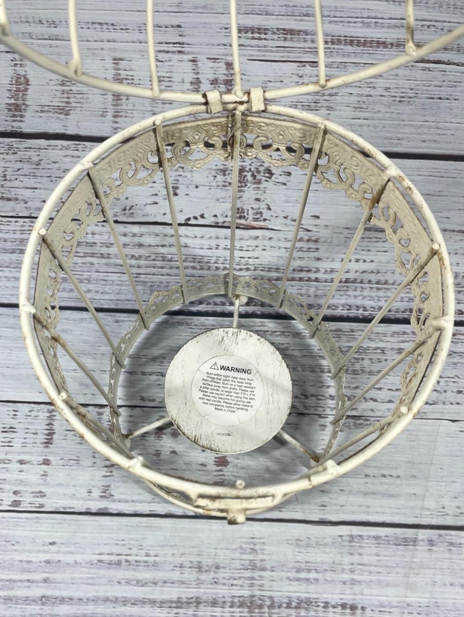 Antique Rustic Metal White Decorative Round Bird Cage Candle Holder