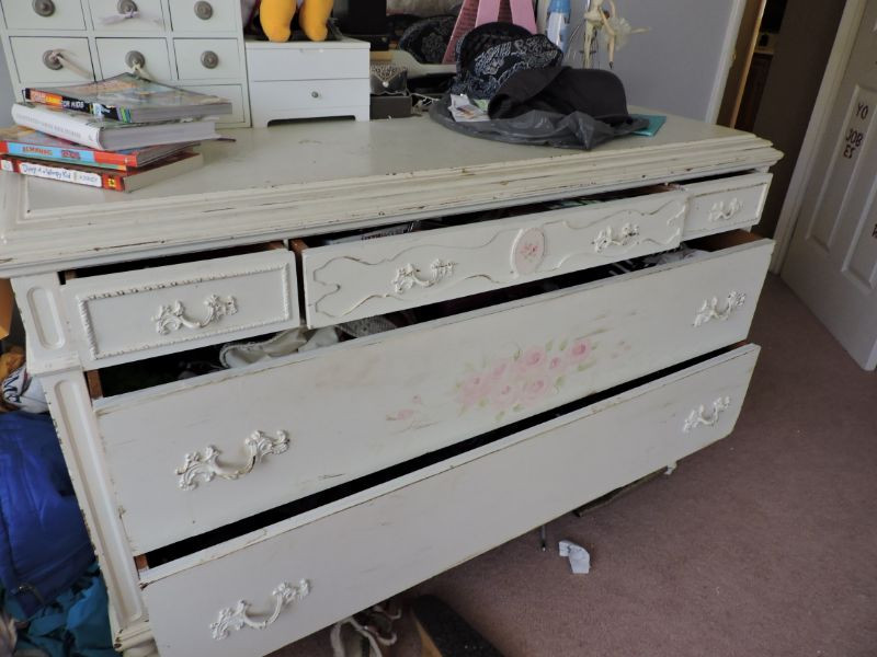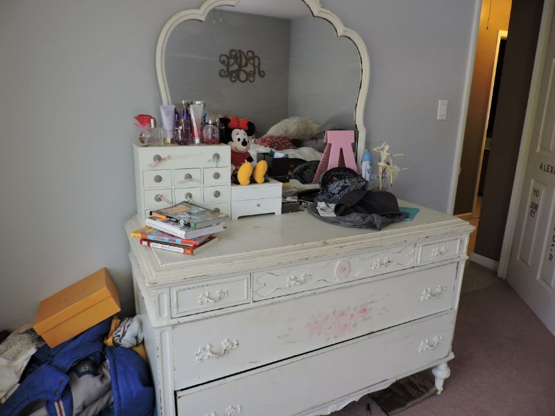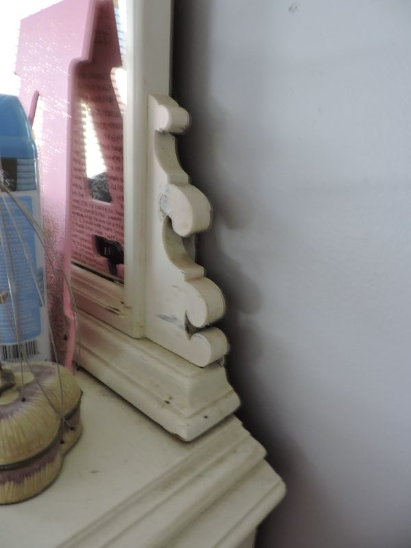 This beautiful dresser needs some love but has great bones! Large 50”x24” drawers and a tall scalloped mirror will make this a great addition to any home! Total height is 74”.