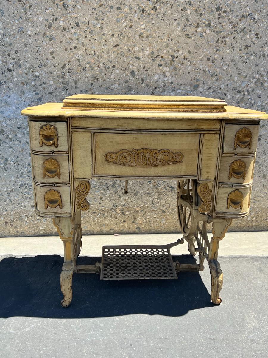 Antique White Sm Co. Victorian Style Sewing Machine