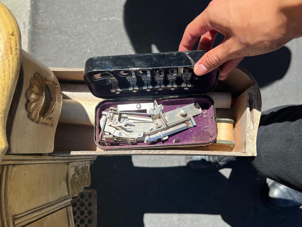 There is some wear to the sewing machine, but there is no significant damage and is in overall good collectible condition. Check pictures for more details and for sizing.