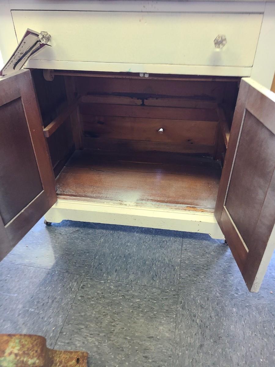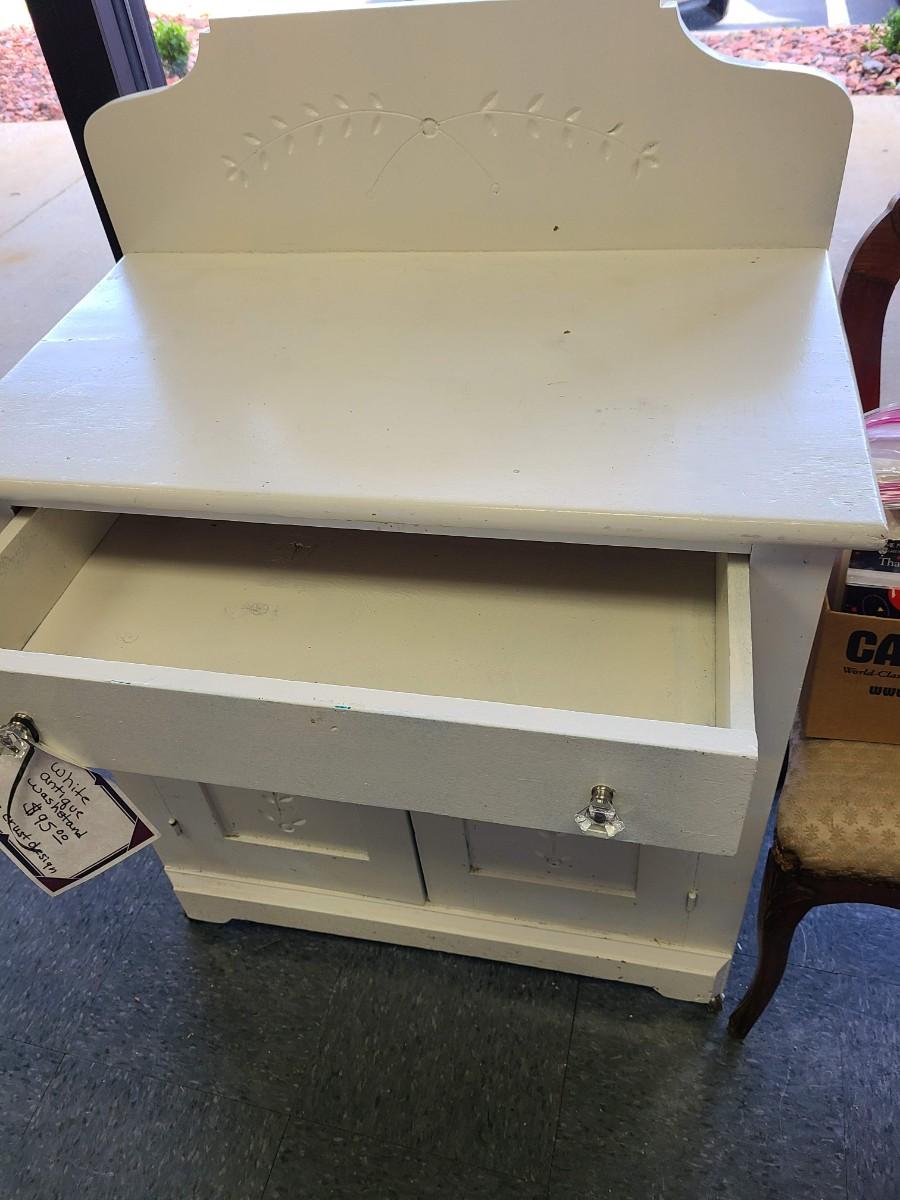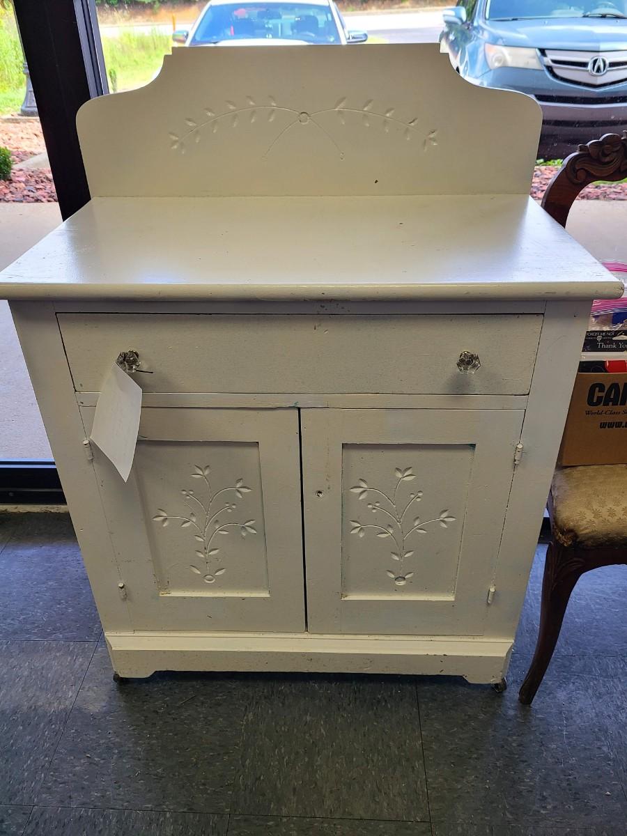 Antique White Washstand with Pie Crust Design - 29 1/2 x 17 1/2 inches and 30 tall