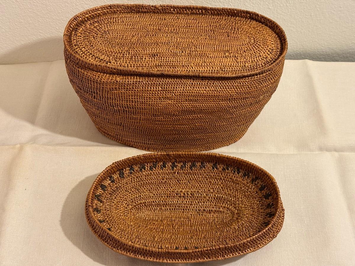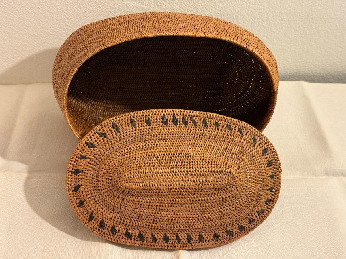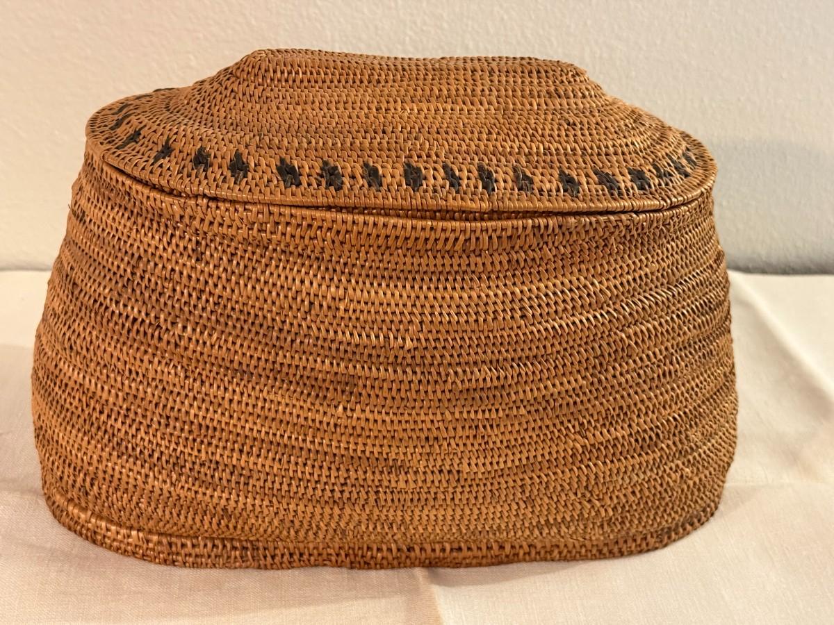 Antique Wicker Storage Basket with Lid.
