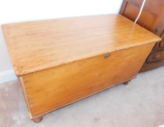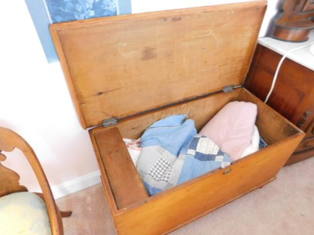 Antique Wide Slab Solid Maple Wood Early American Pennsylvania Blanket Chest this is a downstairs item