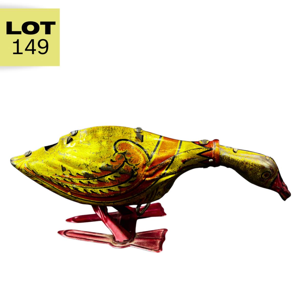 This Golden Goose Pecking toy was produced by Marx in the 1920s. This piece is in exceptional condition. It can also lay eggs, in addition to the pecking. A fact that I was unaware of until doing some research on this cutie. The egg-laying is untested. **Works, Video of Function on YouTube Video, Has Key** Please see photos for details and condition. **|** ::: Shipping is available on this lot. If you require shipping you must let us know at the close of the auction. We will coordinate with you after the item has been won. Shipping fees will include insurance up to or exceeding the value of all items being mailed. If you have any questions regarding this lot please contact the auctioneer either via this website, by direct email or by phone. PICK UP TIMES and other important information can be found in the TERMS and DESCRIPTION of the auction. Please take a look for pertinent information. Thanks!
