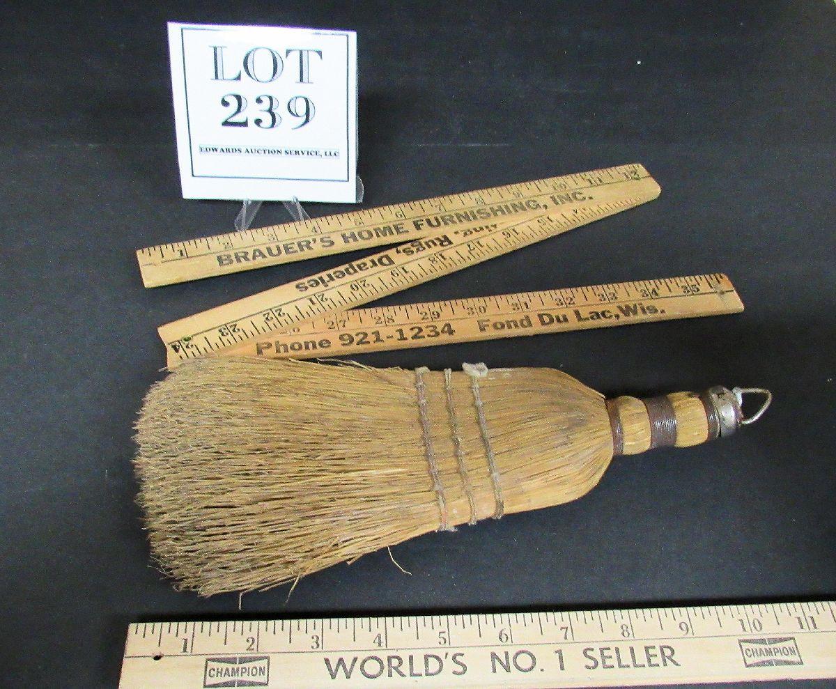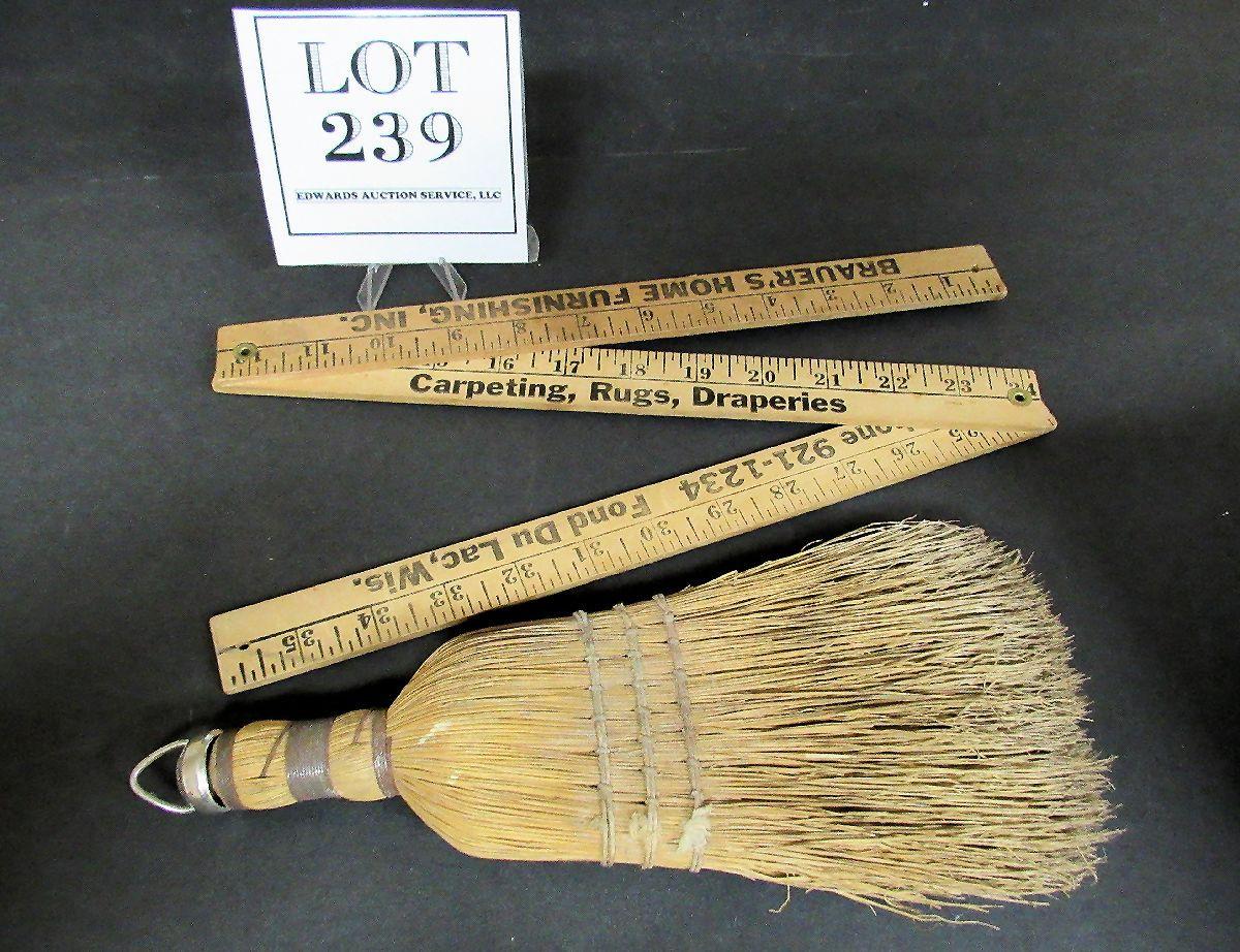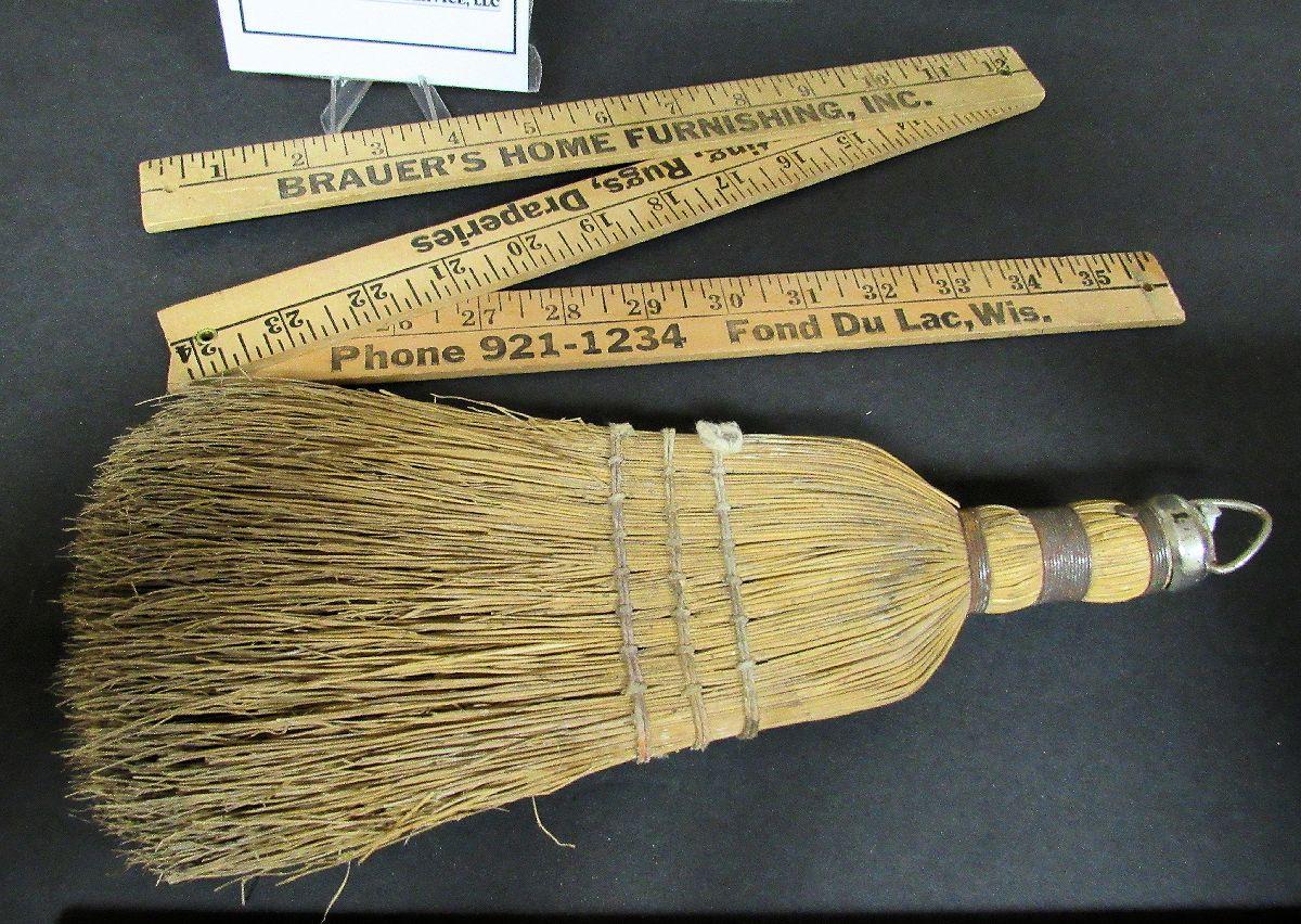 Antique Wisk Broom and Fond du Lac, WI Advertising ruler, Brauer's Home Furnishing