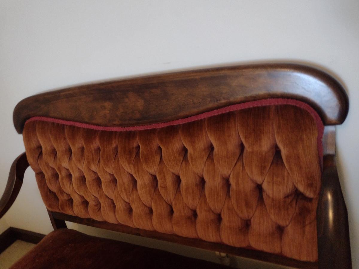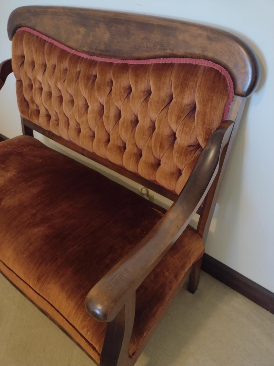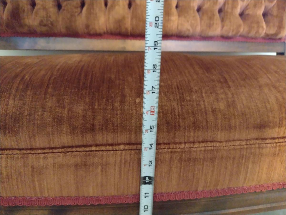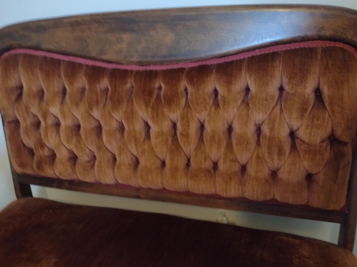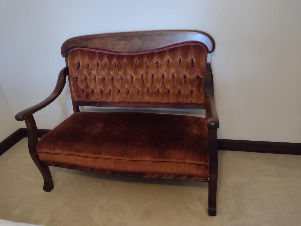 Antique Wood Bench with Upholstered Seat and Tufted Button Back- Approx 49" Long