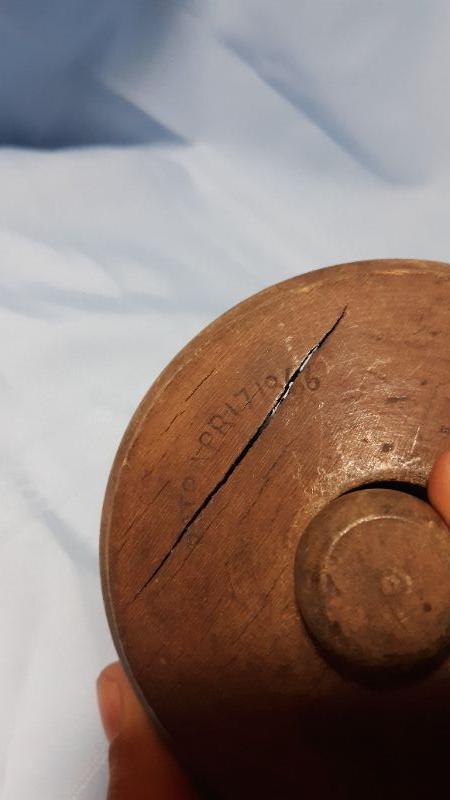 Antique wood butter mold with leaf imprint, stamped PAT APR 17 1866, body 4x4.5