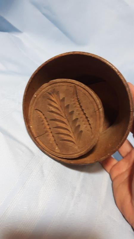 Antique wood butter mold with leaf imprint, stamped PAT APR 17 1866