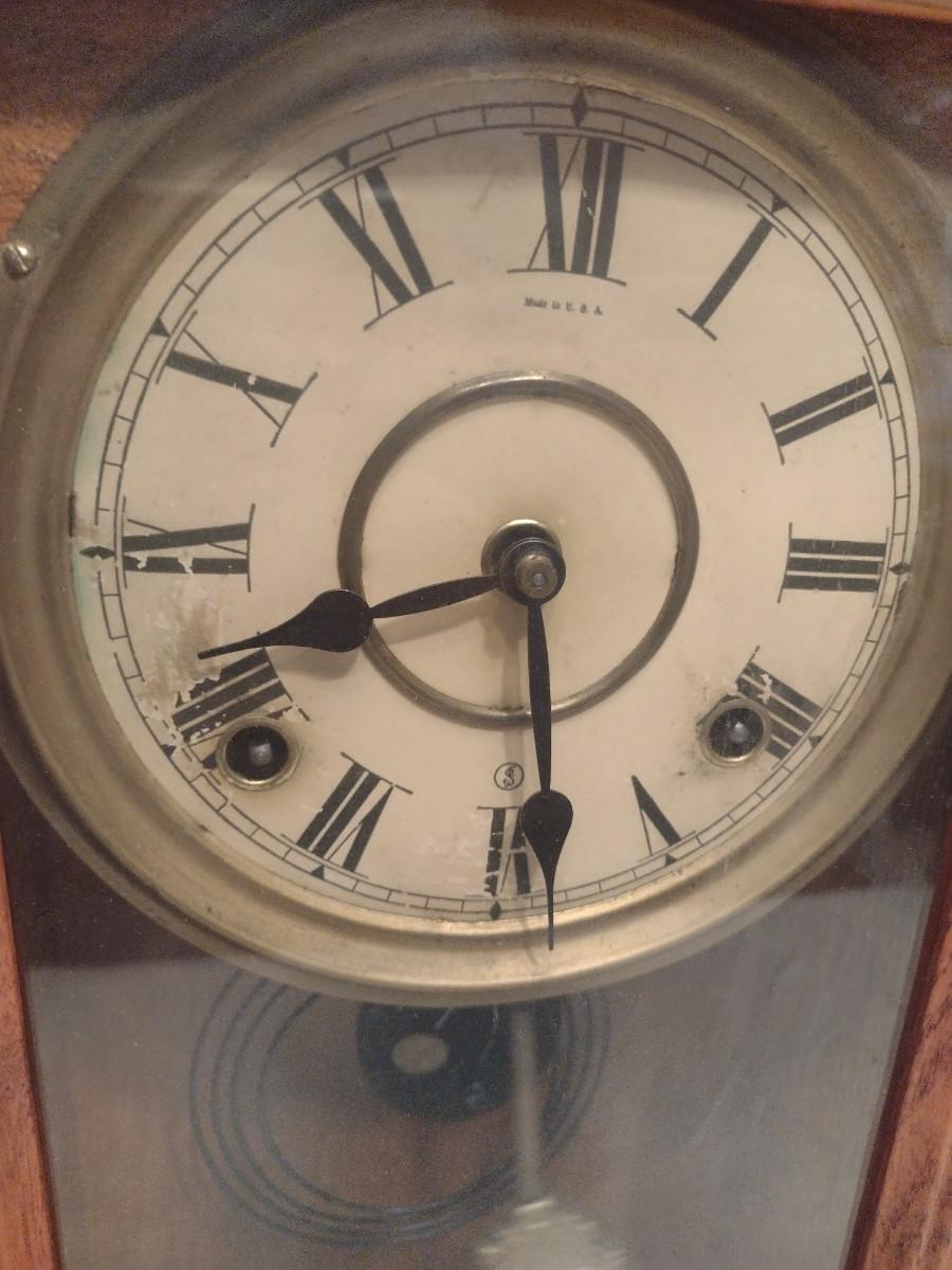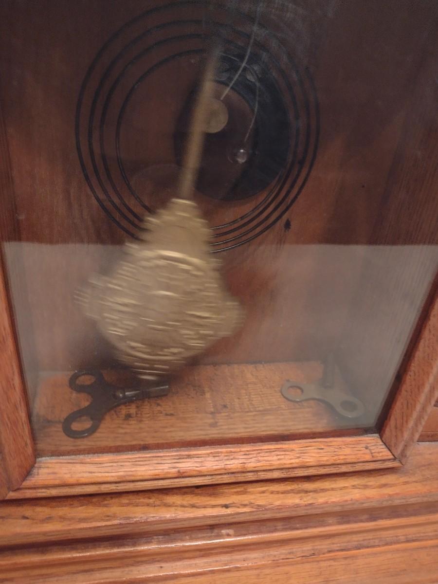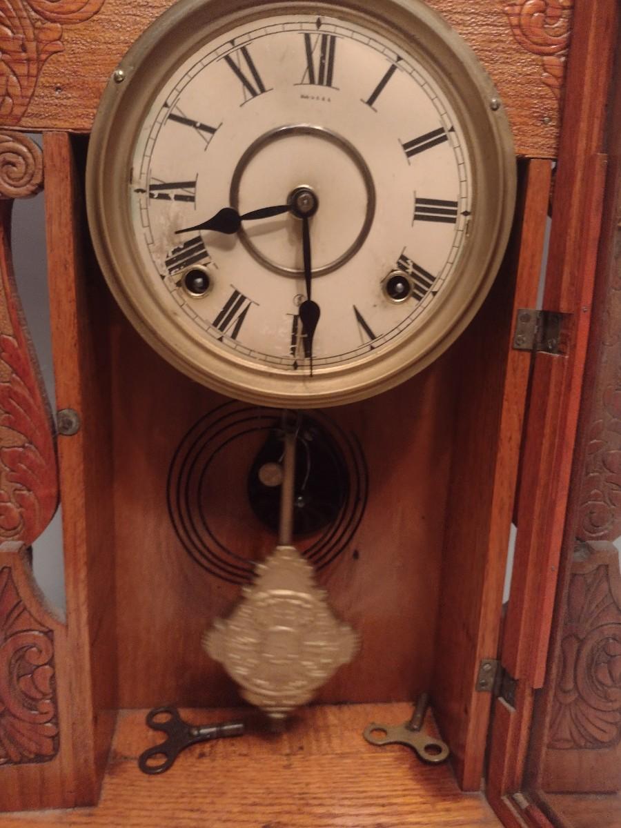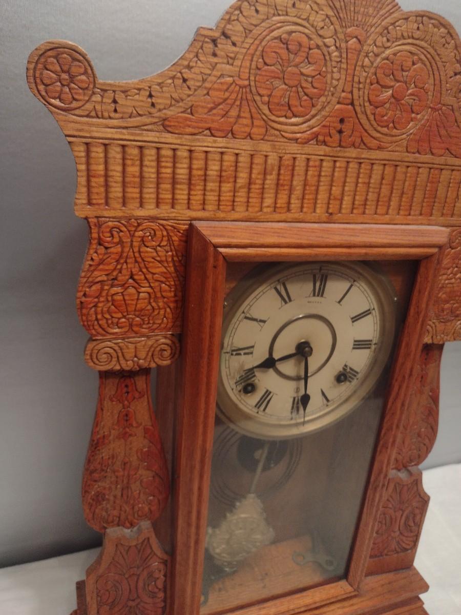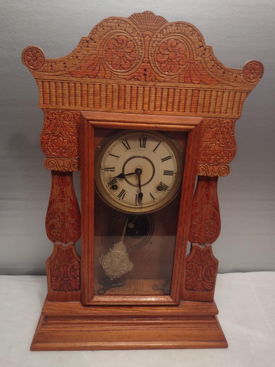 Antique Wood Case Gingerbread Mantle Clock with Key