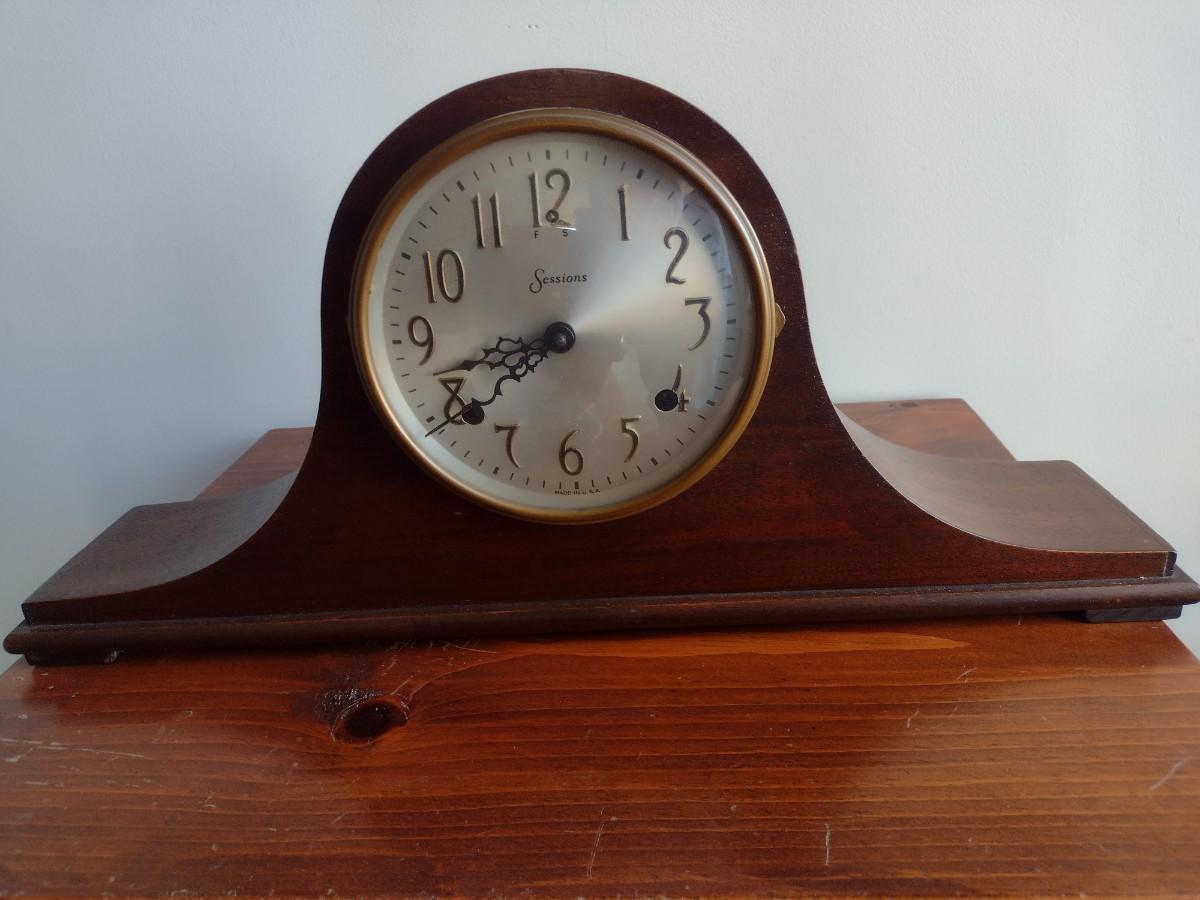 Antique Wood Case Mantle Clock--No key. Unknown working condition.