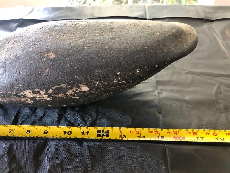 Antique Wood Decoy Duck with Black Body and Yellow Beak Bill