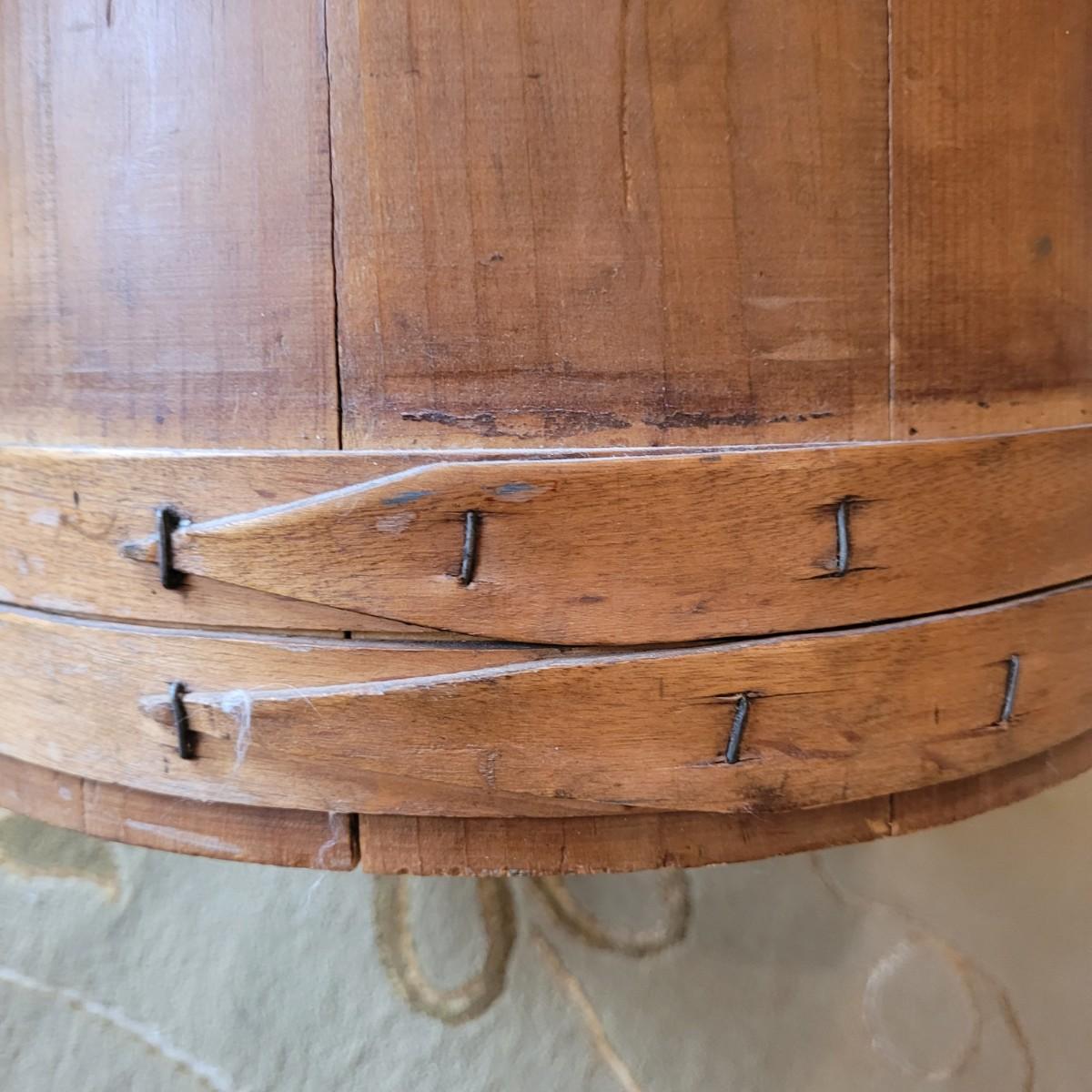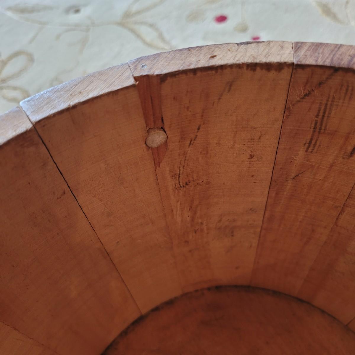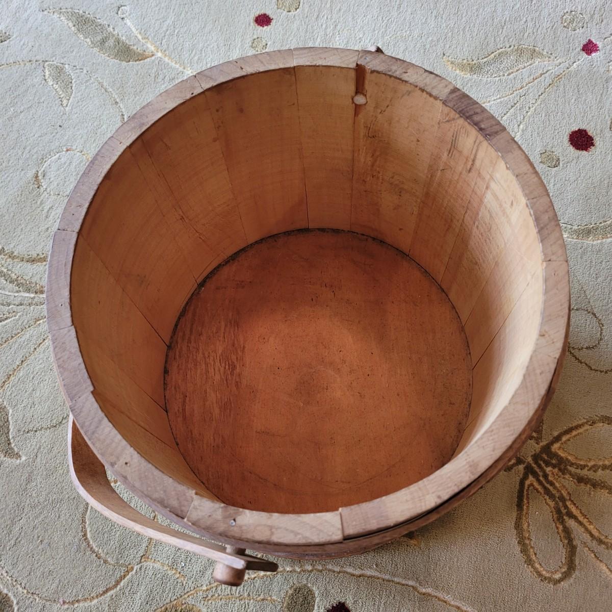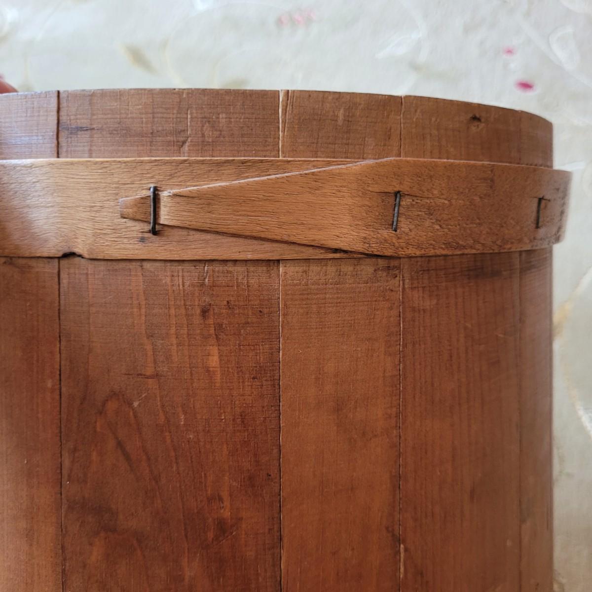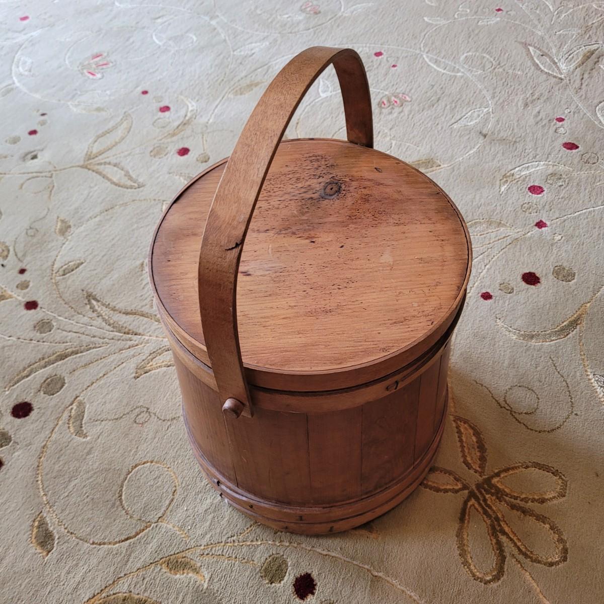 Wooden firkin or sugar bucket in wonderful condition for its age. This item is complete with lid and measures 12" x 12" x 13"H.