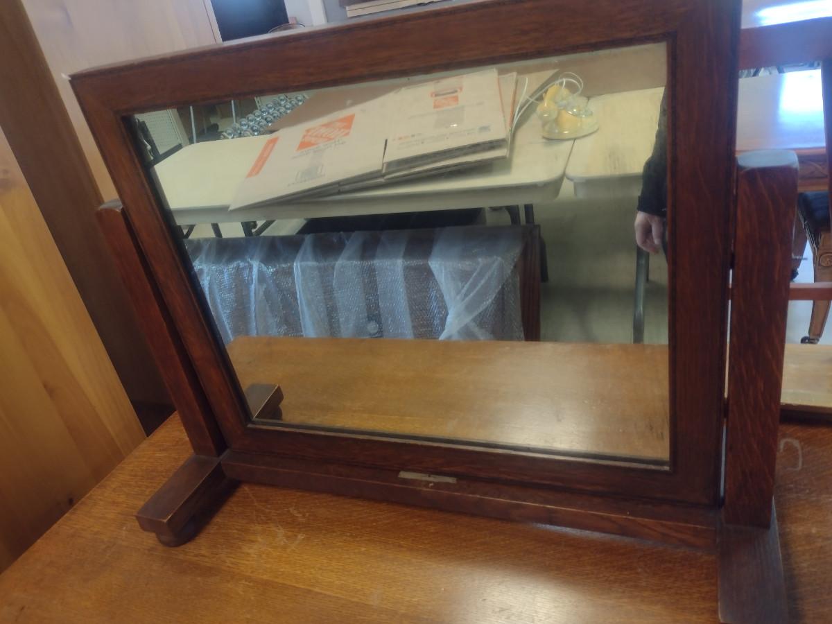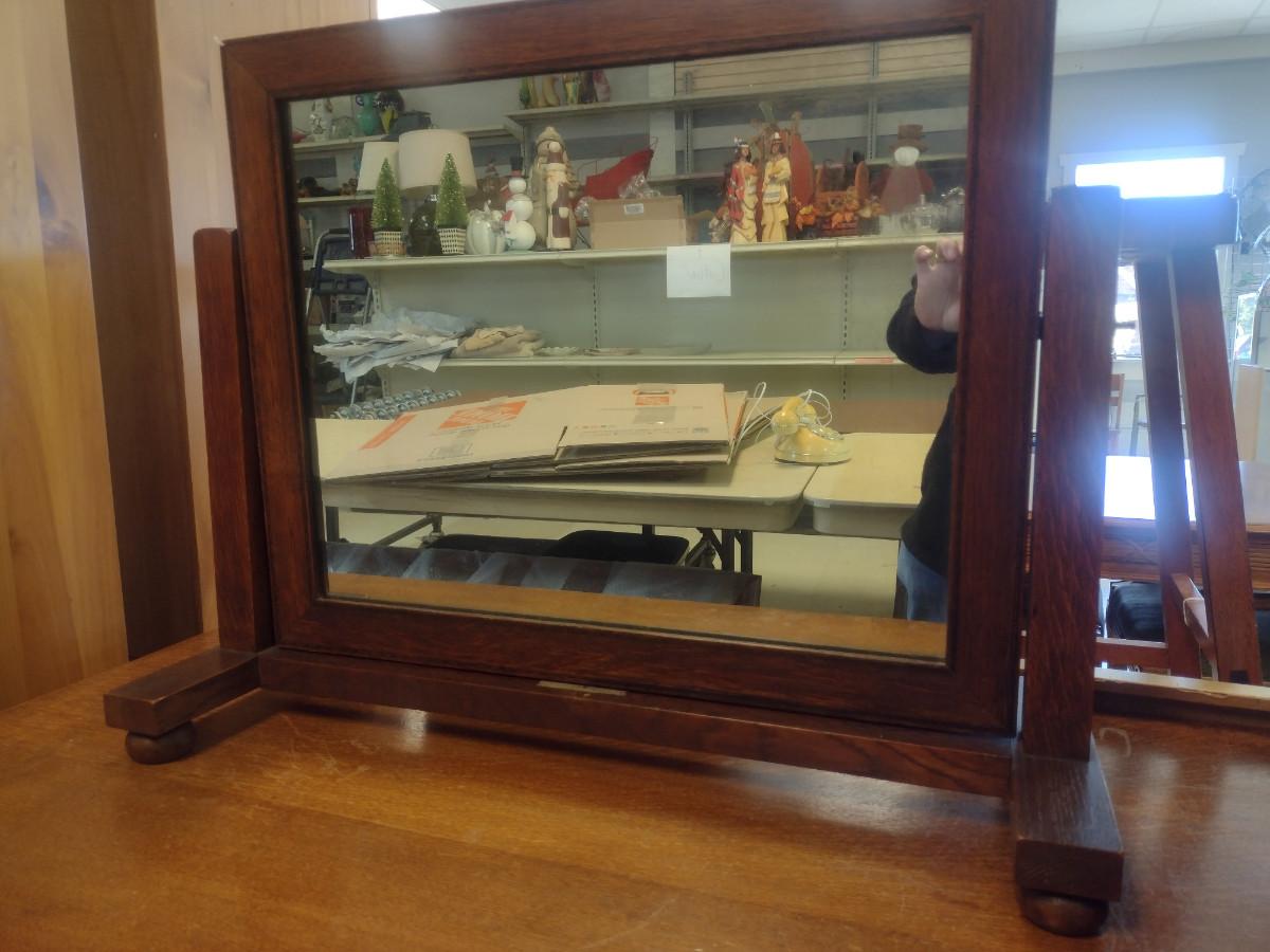 Antique Wood Frame Swiveling Dresser-Top Mirror- Approx 26" x 21". Appears that mirror can be removed from base and hung on wall.