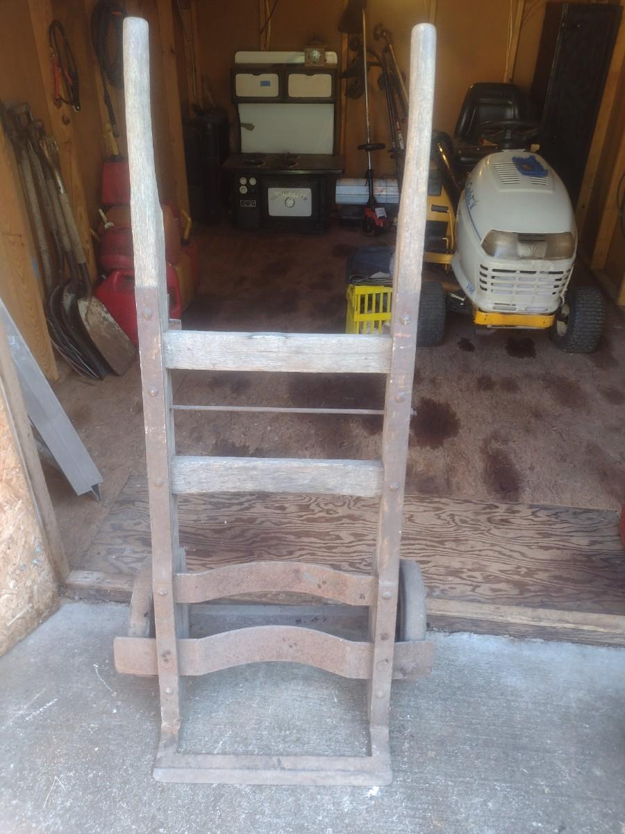 Antique Wood Framed Hamilton Barrel Hand Truck